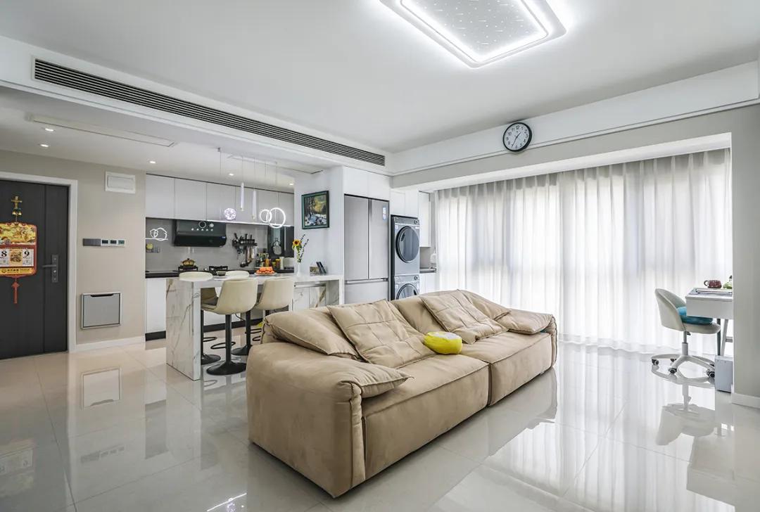 該業(yè)主偏愛(ài)優(yōu)雅浪漫的奶油風(fēng)格,希望擁有一個(gè)開(kāi)放式廚房,讓居住空間更加自由和開(kāi)闊。我們對(duì)原始結(jié)構(gòu)進(jìn)行了改造,拆除兩個(gè)朝南臥室之間的單磚墻體,以提高儲(chǔ)物空間。同時(shí)將廚房改造成開(kāi)放式,使得整個(gè)空間更加開(kāi)闊和通透。