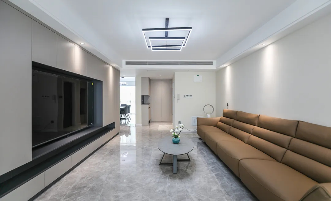 該居室主人夫妻倆都是做生意成功人士,兒子正在上高中,父母在同小區另一套房子里,居住一家三口,所以該套房子裝修體現簡潔、干凈,體現簡約風格的舒適之美。講究功能第一,花里胡哨的裝飾物可以拋開不要。