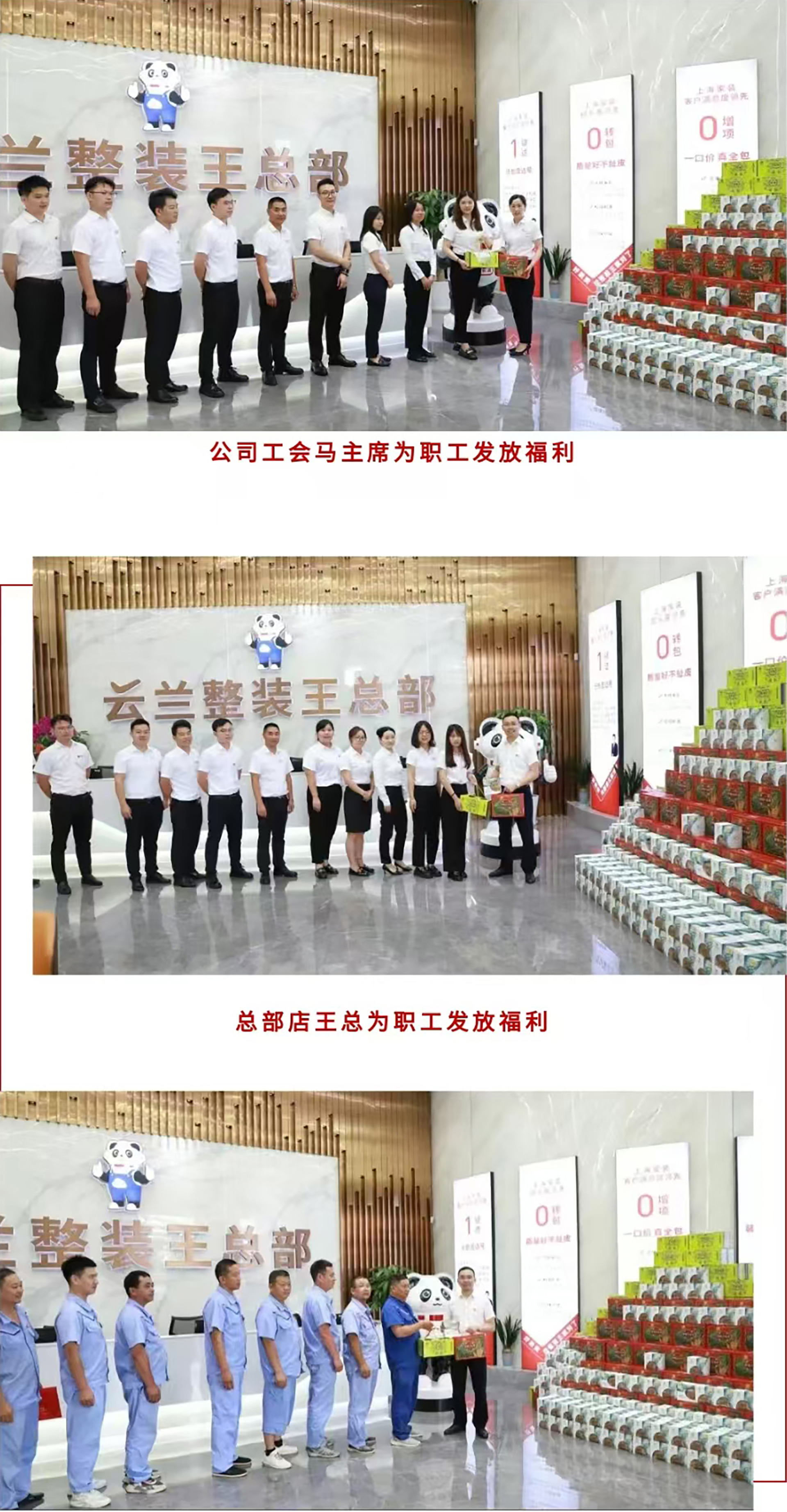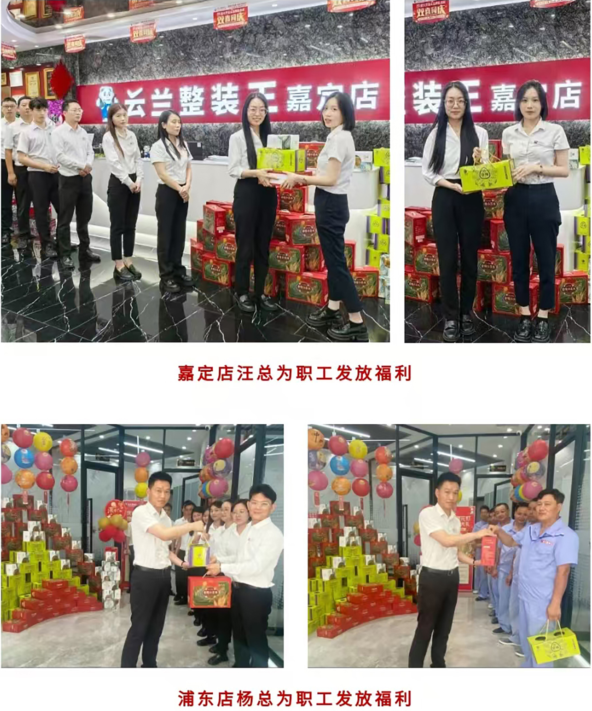 公司通過精心挑選這些健康食品作為福利,表達了對員工健康的關心,希望員工們能度過一個愉快的中秋節日。在云蘭整裝王的各門店,員工們領取福利的場景充滿了歡聲笑語。他們聚集在前臺,臉上洋溢著期待和興奮的笑容。員工們互相交流著對這些禮品的喜愛和對公司的感激之情。