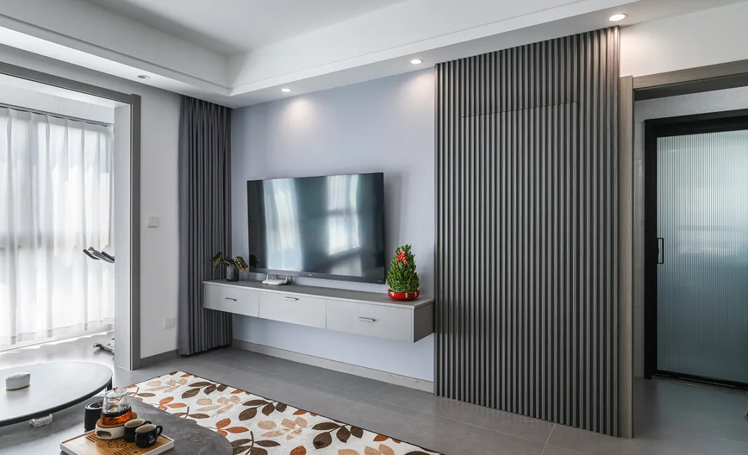 木格柵電視墻不僅美觀,還能有效減少墻面的光折射,讓觀影體驗更舒適。同時,它還能巧妙地隱藏電線和插座,讓客廳看起來更整潔。