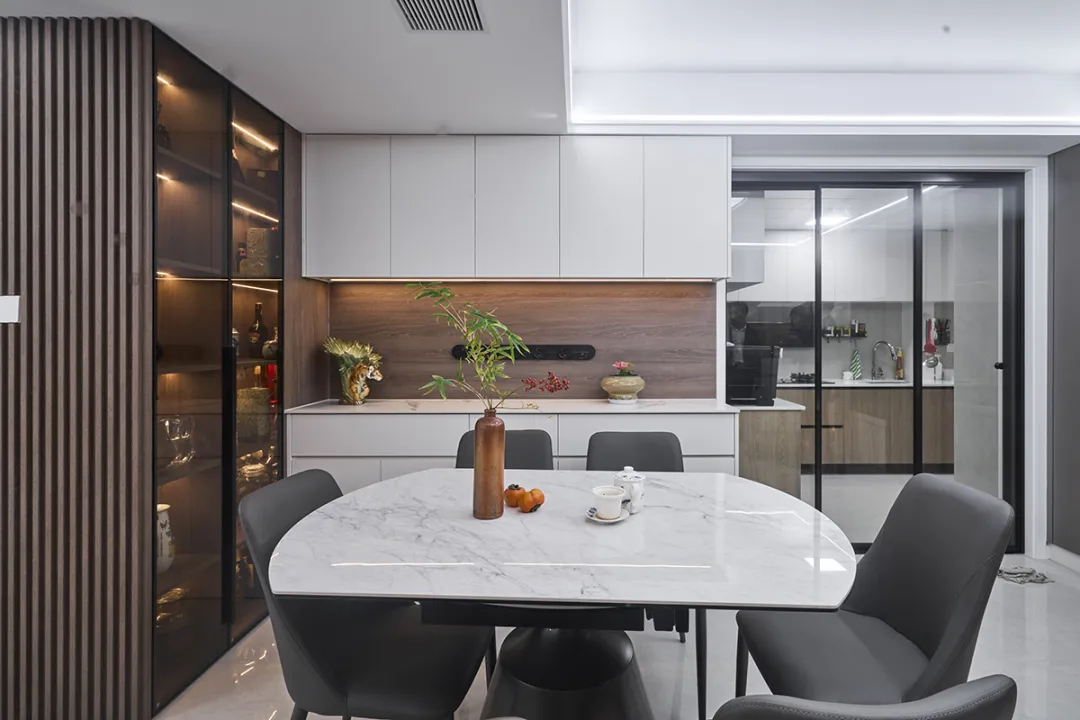裝修不僅是要滿足居住功能,更要提升家居生活的美感。木格柵元素在視覺上疏密有致,有效分割空間,能增加空間的層次感和美觀度。所以把木板“扶上墻”能瞬間拉伸空間效果,加強了木材的細節質感,讓家里更具層次感和藝術感。