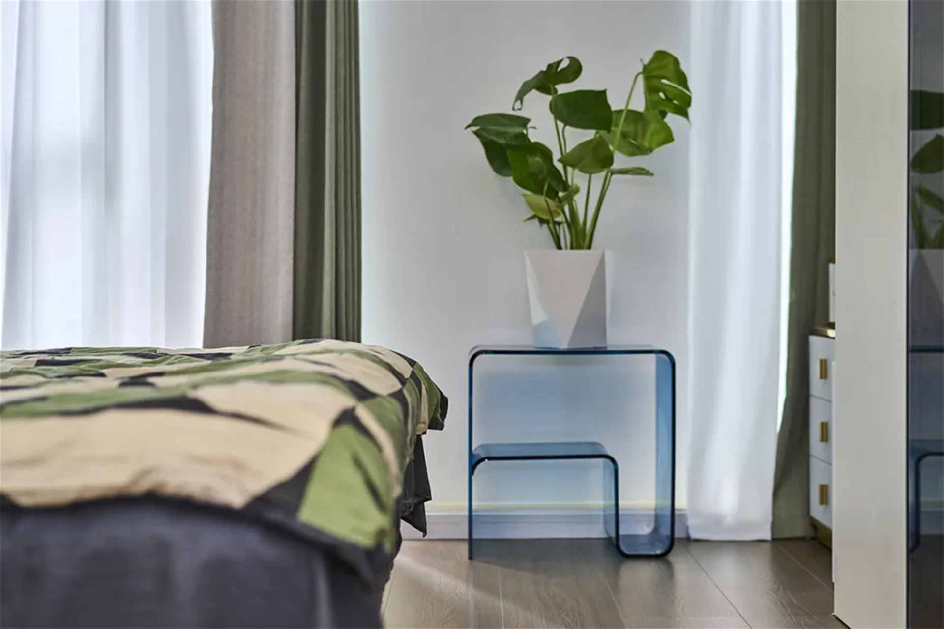 高品質搭配:選用高品質主材,如菲林格爾地板、多樂士乳膠漆等,確保裝修質量;精致軟裝如撞色床品、裝飾綠植等,細節之處彰顯現代氣息。