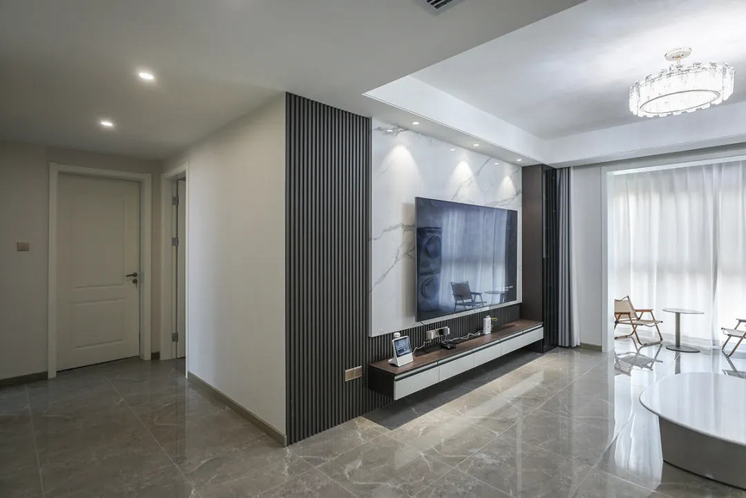 2、開放空間設計,開放式廚房、通透的客廳+靈活的隔斷,讓家庭成員之間的互動更加自然流暢;