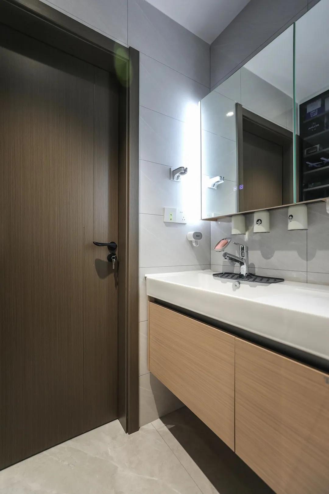 3、衛生間采用干濕分離設計,提高使用效率;北面小房間改造成獨立書房,滿足閱讀和收納需求。