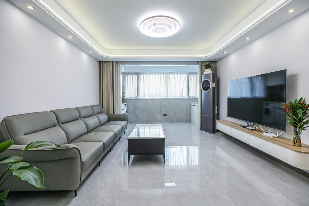 1、客廳區(qū)域拆除了南陽臺的移門,擴大了空間感;