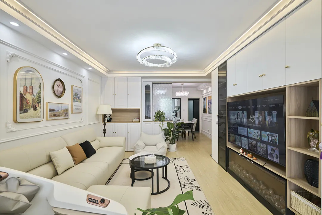 吳楊東路333弄:這套105㎡的住宅布局合理,采光充足,完美詮釋了夏日“多巴胺”美居的綠色清涼與環保新風尚。業主身為國企中層,品味卓越,選擇了莊重典雅的歐式風格。設計師巧妙融合古典與現代元素,搭配清新綠與奶油白的色彩,營造出自然、清新的氛圍。