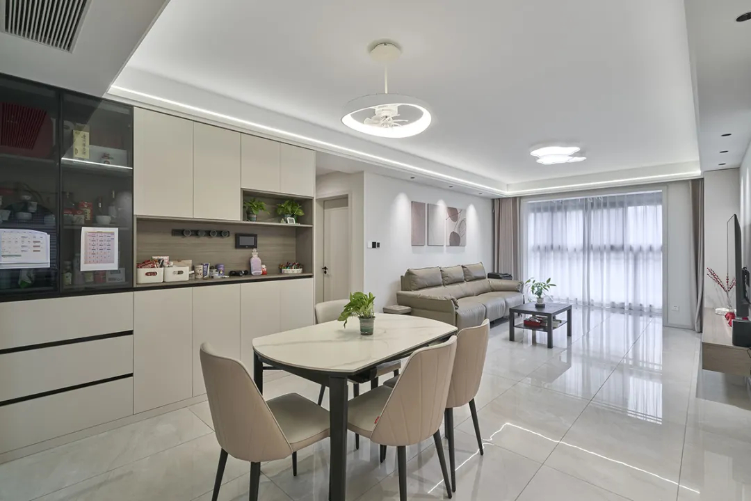 要是收納做不好,東西亂堆亂放,那空間肯定顯得擁擠。我們可以把收納柜集中設(shè)計(jì),比如做個(gè)頂天立地的大柜子,顏色淺一點(diǎn),和墻面或者頂面相呼應(yīng),柜門(mén)就選簡(jiǎn)潔的平板樣式,這樣看起來(lái)就不會(huì)覺(jué)得壓抑,反而還能在視覺(jué)上拉伸空間,讓家里看起來(lái)更寬敞。