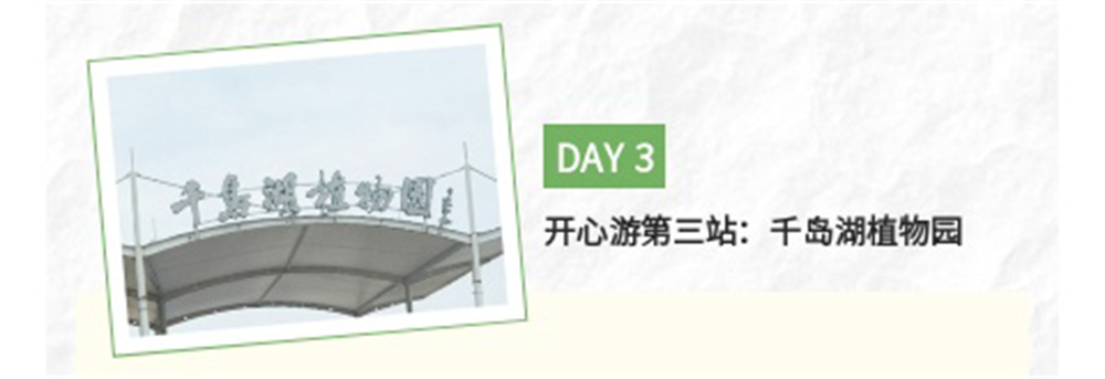 15日早上,大家前往千島湖植物園。千島湖植物園四面臨水,通過一條橋梁連接外界,整個景區分為一軸、一核一帶、五個片區。