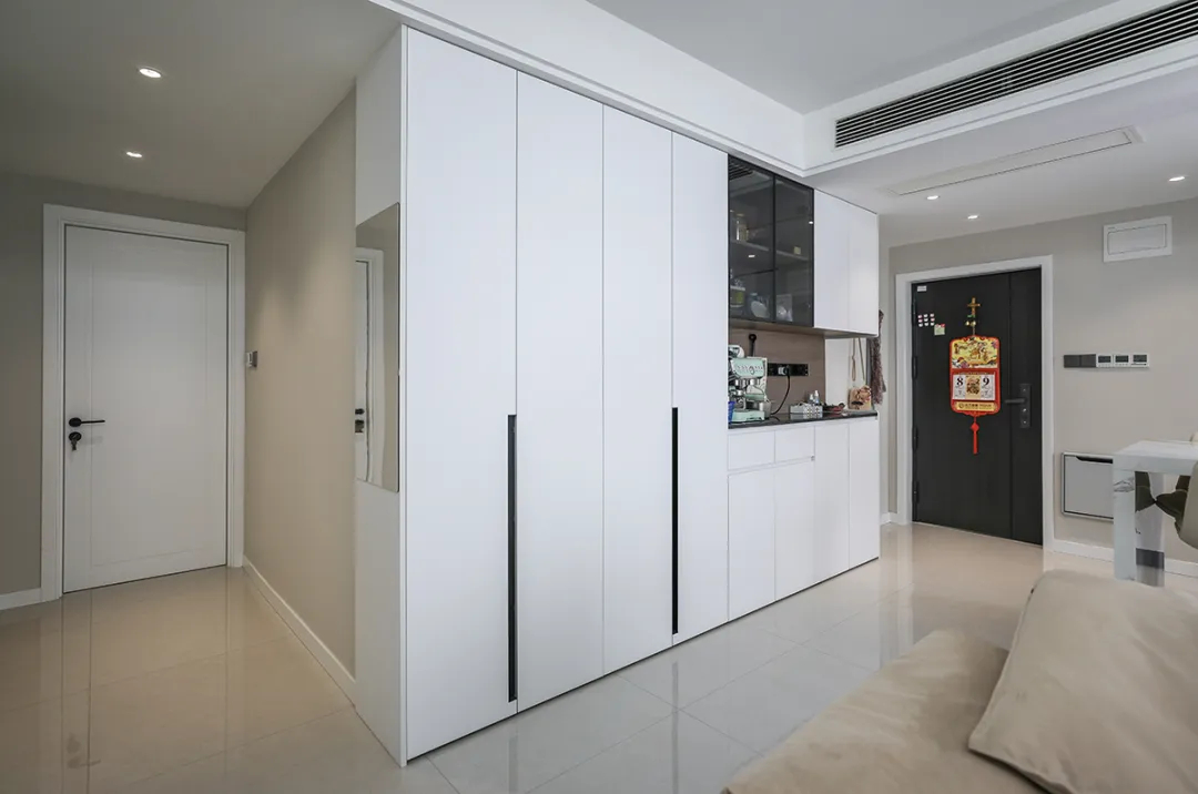 全屋定制多做高柜格,所有外穿衣服都掛起來,再也不用擔心衣服皺巴巴,熨燙也省了,疊衣服更是不想干。