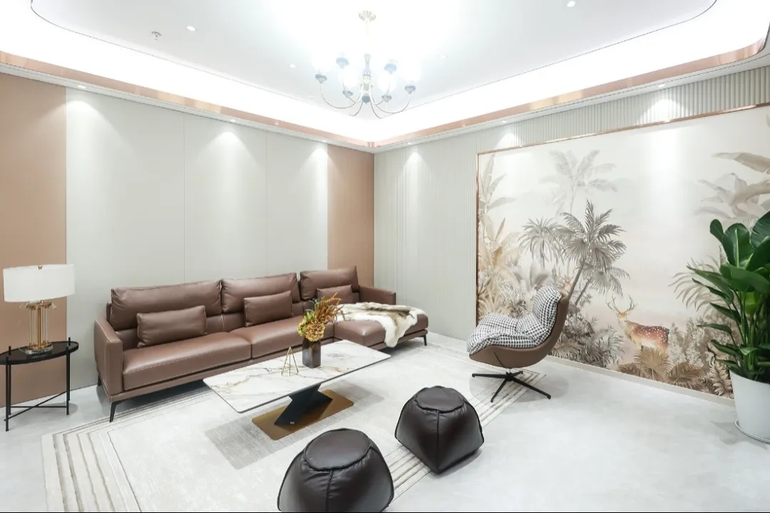黃浦旗艦店以“沉浸式”體驗為核心,精心設計了多個功能區域,包括接待區、軟裝展示區、實景樣板間展示區、建材展廳、電器展廳和定制柜展廳。