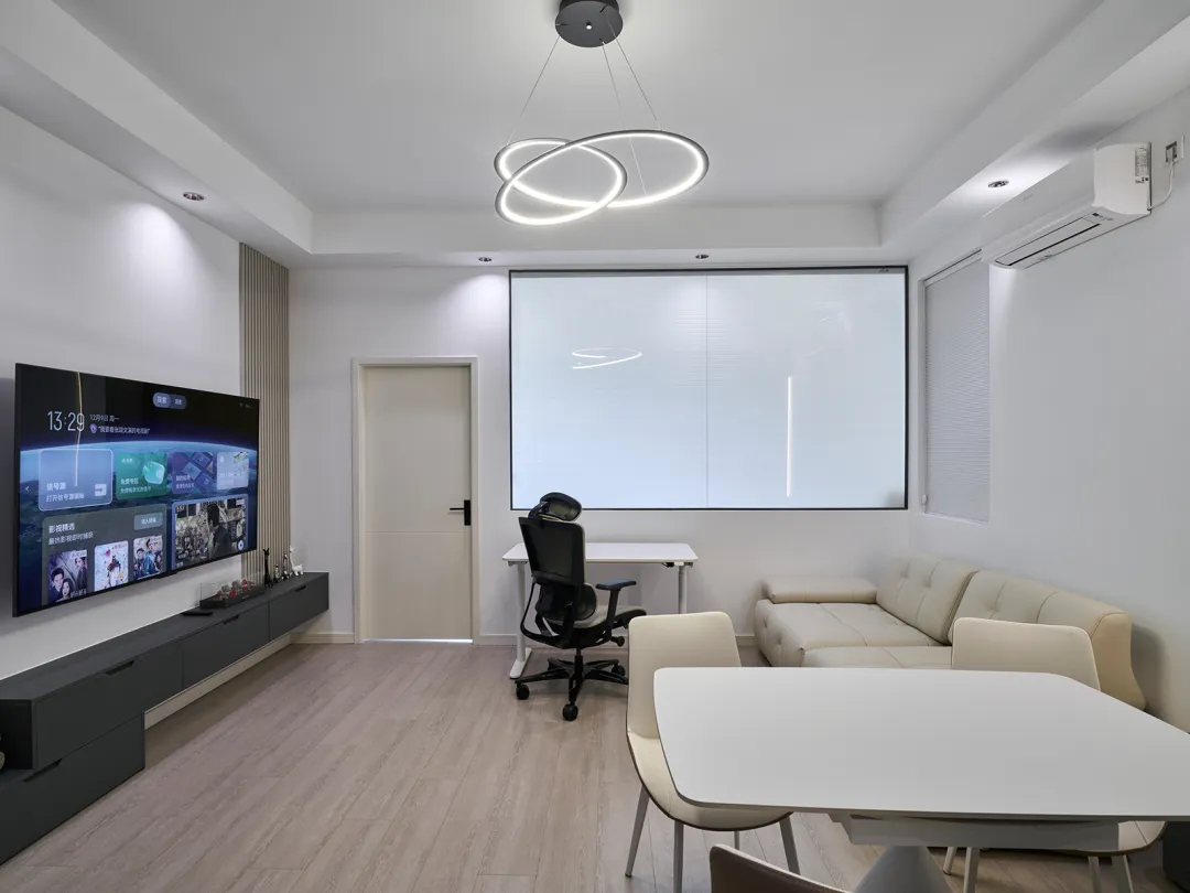 在大落地窗前安置了一個升降電腦桌,完美地滿足了主人的辦公和游戲需求。無論是處理工作事務還是享受游戲時光,都能在這里找到屬于自己的舒適空間。