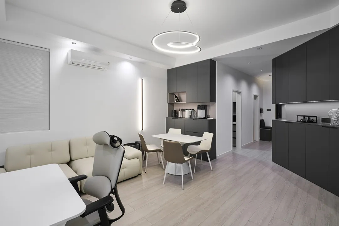 為了滿足業主的需求,我們采用黑白灰風格作為基底,對每個空間進行精心規劃設計,并在材料上注重環保和品質,通過兩個多月的匠心施工終于完美交付。