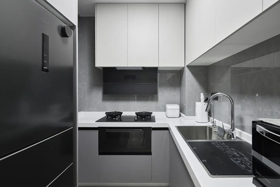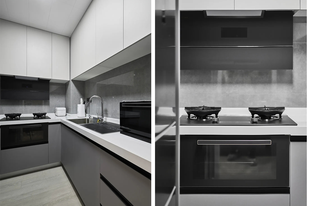 房面積為5平方米,采用了L型櫥柜布局,搭配方太的集成烹飪中心和水槽洗碗機,不僅滿足了業主廚房的所有需求,還使廚房空間得到了充分利用,讓烹飪變得更加輕松便捷。
