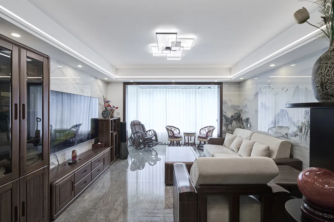 新中式風格:本案例位于普陀區陜西北路1789弄,是一套面積為125平方米的住宅,實際得房率高達92平方米。業主是一對國企退休的叔叔阿姨,他們希望將這套房子作為養老居所。根據業主的需求,設計師以新中式風格進行家裝設計,在整個裝修過程中注重新中式風格的實用性和簡潔清爽,通過精心設計和施工,實現了業主對退休養老環境的期望。