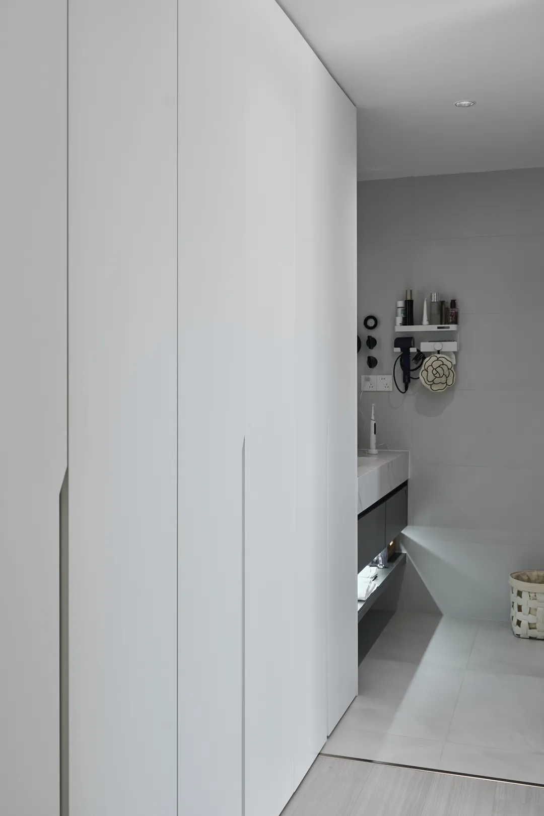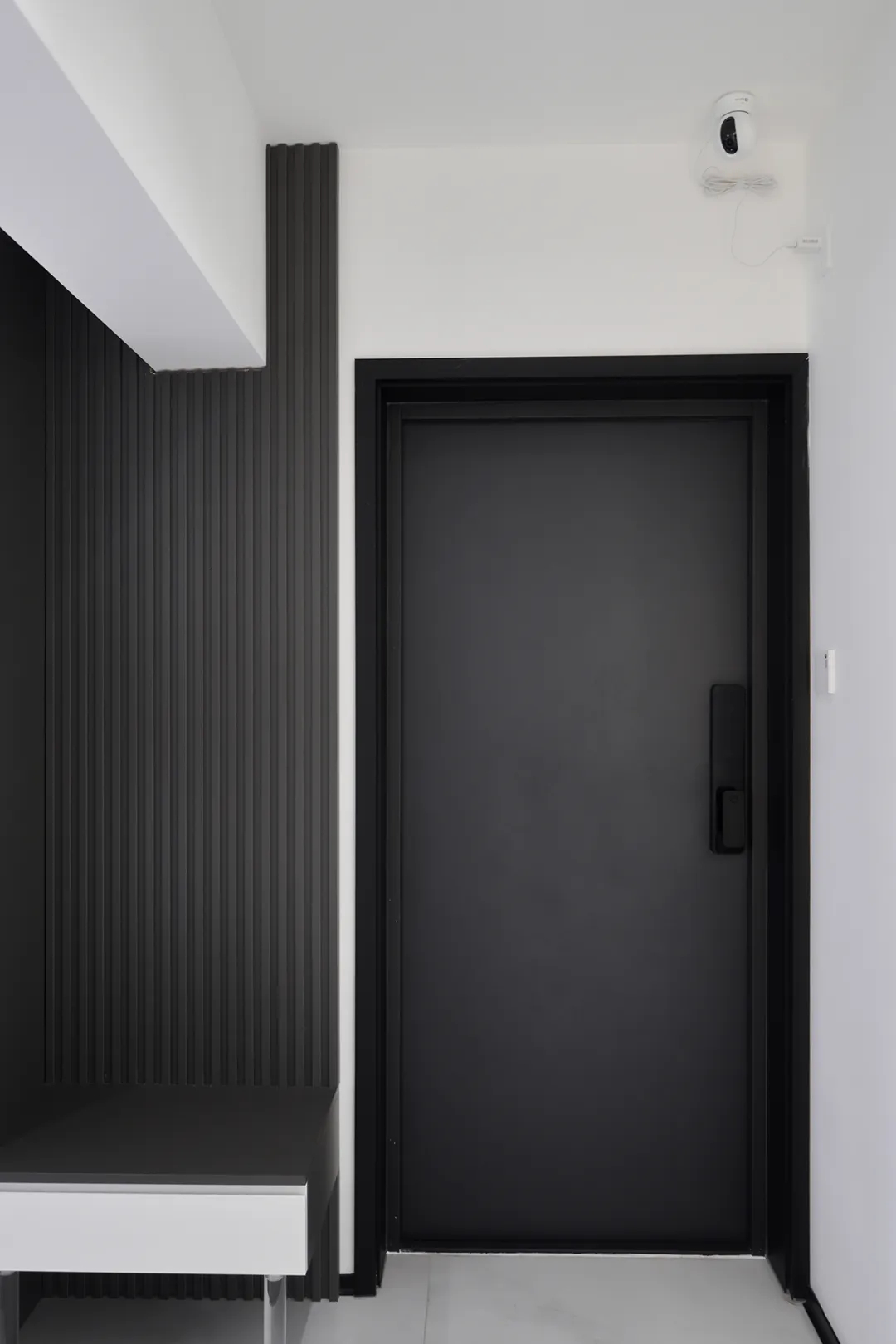 4、玄關處做簡約定制柜,以白色和黑色為主色調,營造出簡潔而時尚的氛圍,給予入戶高級觀感......