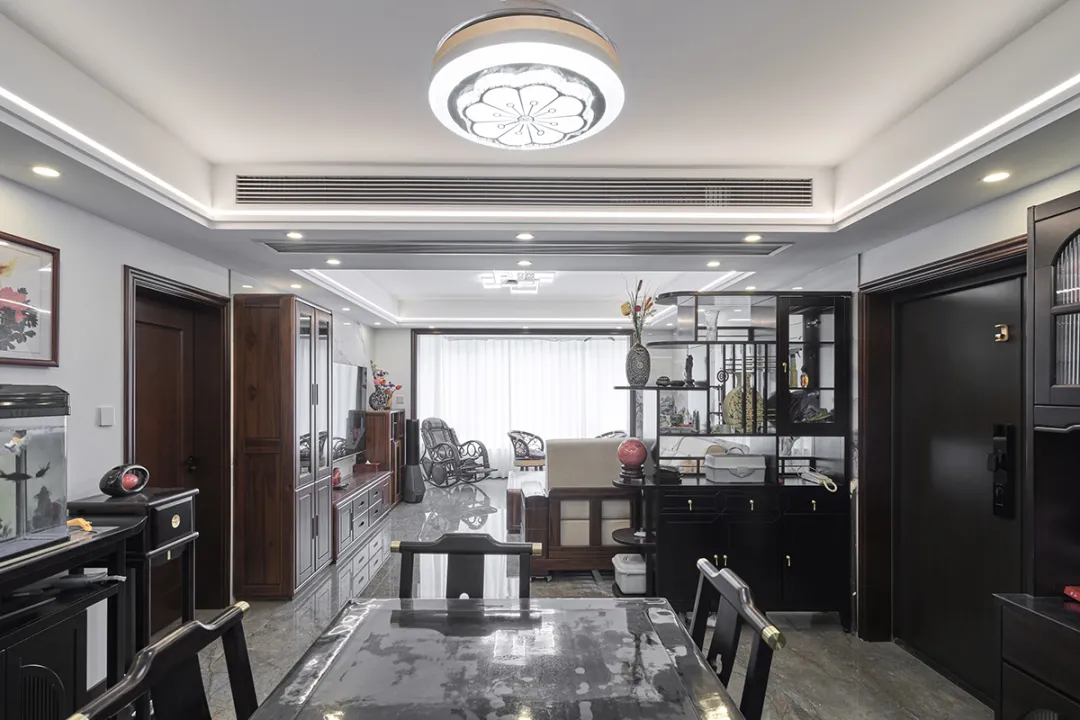 本案例位于普陀區陜西北路1789弄,是一套面積為125平方米的住宅,實際得房率高達92平方米。業主是一對國企退休的叔叔阿姨,他們希望將這套房子作為養老居所。業主對裝修有著明確的要求,希望采用現代新中式風格來搭配原有的中式復古家具,同時配備中央空調、地暖、中央軟水和凈水系統,以確保居住的舒適度。