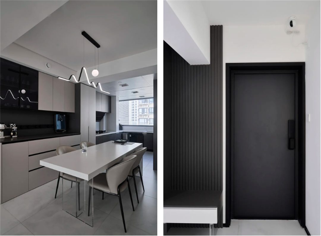 陜西北路1789弄:本套房業(yè)主長期在國外生活,這次回國裝修房子。他希望新家功能實用,還能有點個性,既適合單身生活,又能當婚房使用。圖片為了滿足業(yè)主的需求,我們采用現代黑白灰風格作為基底,對每個空間進行精心規(guī)劃設計,并在材料上注重環(huán)保和品質,通過兩個多月的匠心施工終于完美交付。