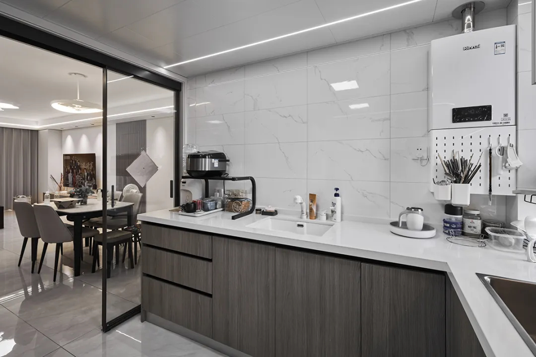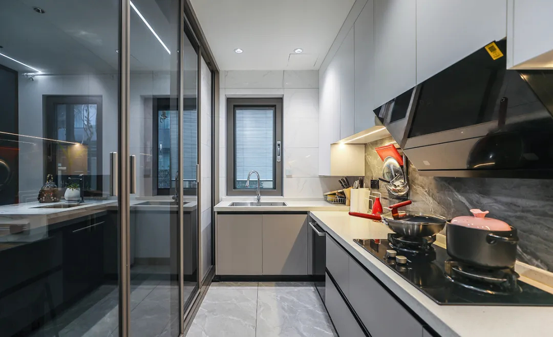 要是廚房的墻體不是承重墻,可以考慮砸掉一部分,換成玻璃門(mén)或者玻璃窗。這樣不僅能改善采光,還能讓廚房看起來(lái)更通透。要是擔(dān)心油煙問(wèn)題,可以選擇玻璃聯(lián)動(dòng)門(mén)或者玻璃門(mén)聯(lián)窗,既滿足采光又不用擔(dān)心油煙。要是空間允許,還可以在窗下做個(gè)吧臺(tái)或者收納柜,增加廚房的使用功能。