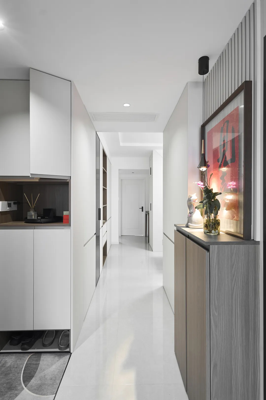 長窄過道光線暗、空間浪費?試試把墻變成隱形收納柜,打造家政間,整潔又省地?;蛘咴覊Q成玻璃門,瞬間提升采光,讓空間豁然開朗。