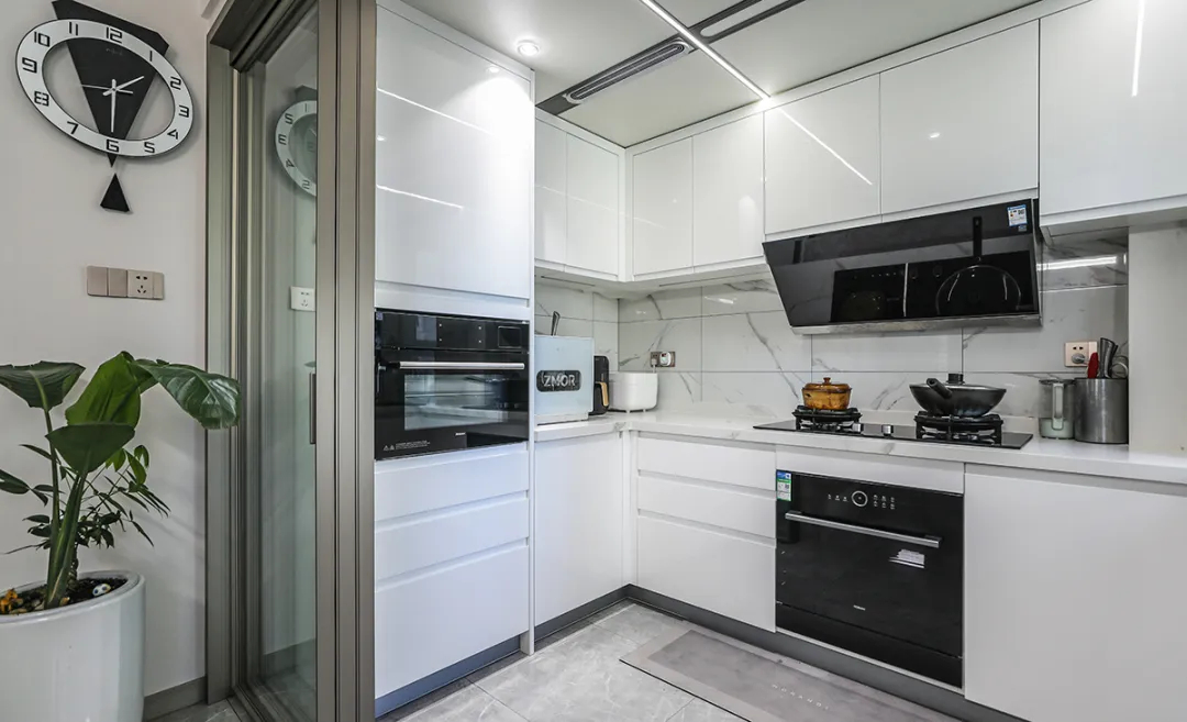 進門廚房又小又暗?砸掉非承重墻,改造成開放式廚房,空間瞬間變大。加個島臺,不僅分隔空間,還能增加收納,讓廚房更實用。