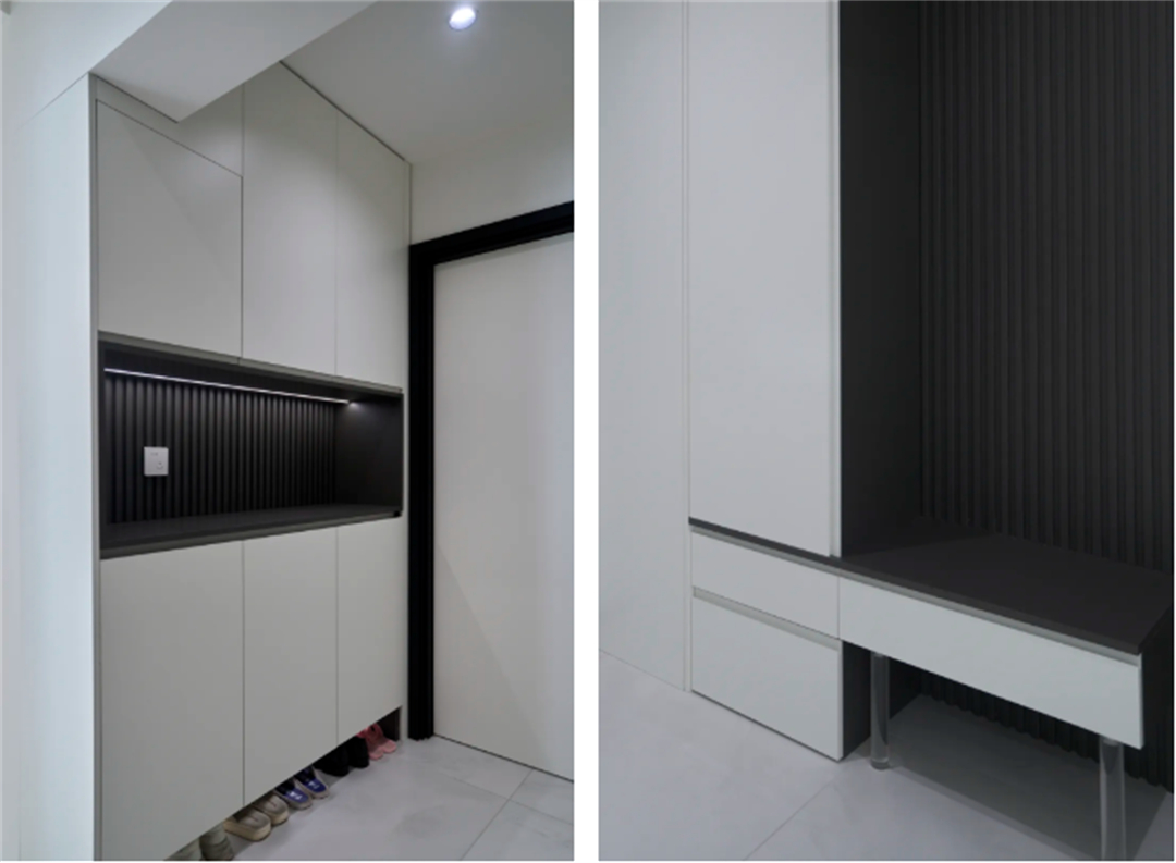 傳統(tǒng)的鞋柜總是顯得笨重,而懸浮鞋柜則輕盈又實(shí)用。底部留空25cm,剛好可以放常穿的鞋子,再也不用彎腰去翻鞋柜了。而且,搭配隱藏?zé)魩В袘?yīng)式的燈光設(shè)計(jì),讓你在起床時(shí)不用摸黑找鞋,溫馨又方便。