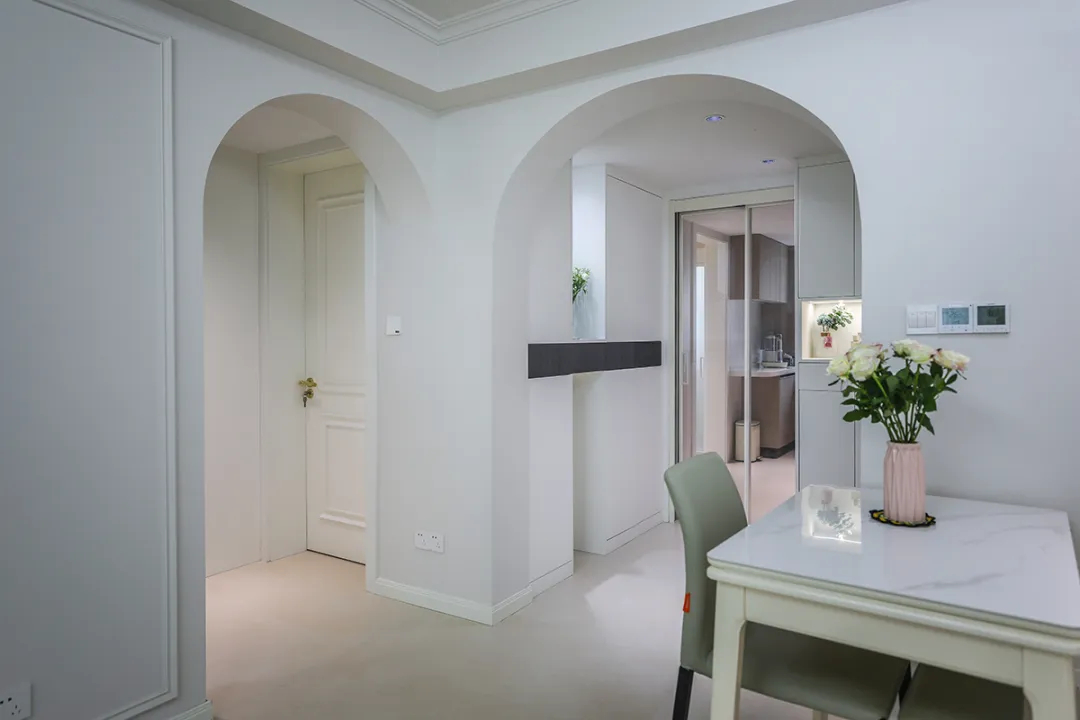 1、拱形元素:拱形是奶油風的標志性設計,能讓空間看起來更柔和。但這種設計施工工藝復雜,對設計師的要求也很高。沒有專業的設計和施工團隊,很容易做出來像“四不像”。