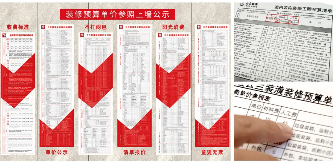 而且,無(wú)論客戶做裝修套餐還是裝修自選,云蘭整裝王均堅(jiān)持清單式報(bào)價(jià)。即家里如何改造,使用什么樣的材料,每一項(xiàng)都有詳細(xì)的工程量計(jì)算。清單式報(bào)價(jià)是杜絕增項(xiàng)加錢(qián)的有效手段,亦是維護(hù)自身權(quán)益的重要依據(jù)。在驗(yàn)收過(guò)程中,客戶可以根據(jù)清單一一核對(duì)項(xiàng)目材料型號(hào)、數(shù)量、做法,來(lái)完成隱蔽工程、基礎(chǔ)工程、竣工驗(yàn)收環(huán)節(jié),滿意后再進(jìn)行支付下批工程款,安全又放心。