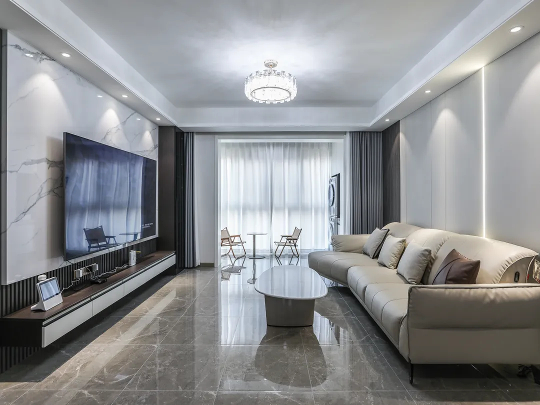 2、開放空間設計,開放式廚房、通透的客廳+靈活的隔斷,讓家庭成員之間的互動更加自然流暢;