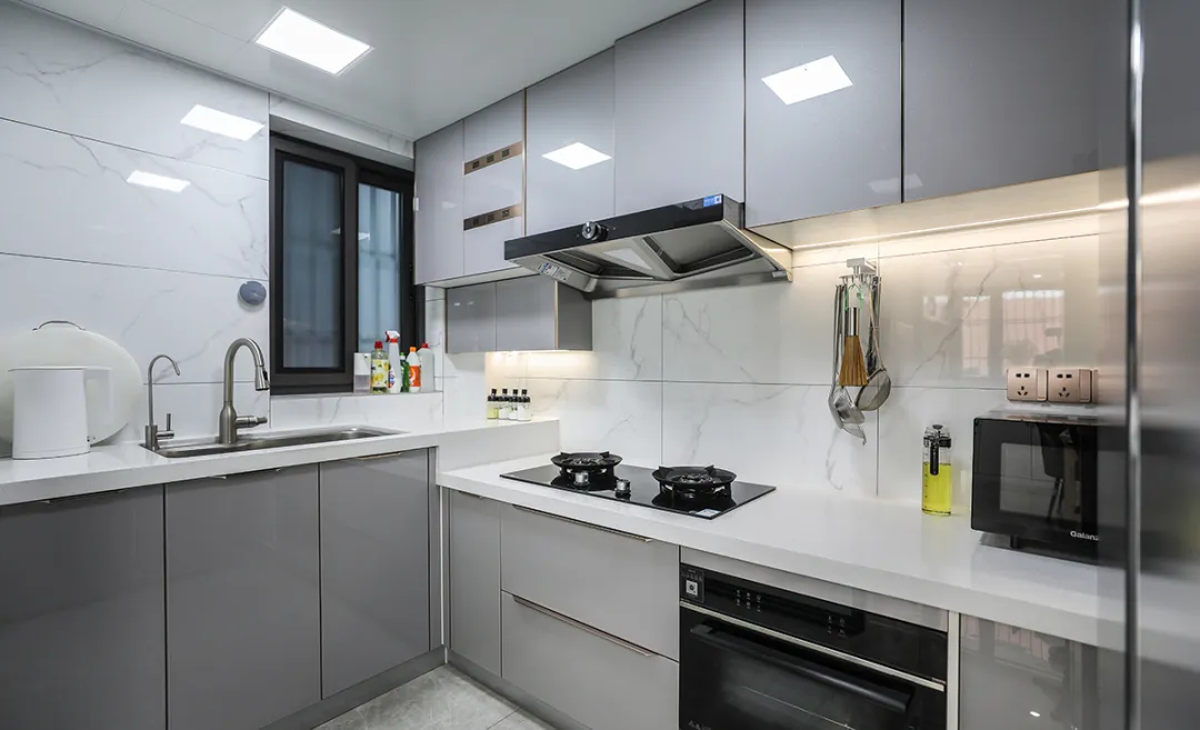 廚房裝修,高低臺(tái)面是必備的底線設(shè)計(jì),備菜區(qū)高度應(yīng)為身高除以 2 再加 5 厘米,灶臺(tái)則再低 8 厘米,這樣操作起來(lái)會(huì)很舒適;