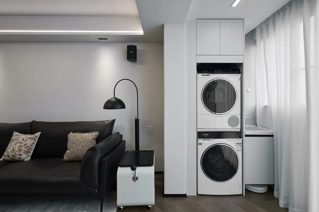 ①洗衣機(jī)和烘干機(jī)疊放起來(lái),再配上抽拉板,疊衣時(shí)就不會(huì)那么酸了;