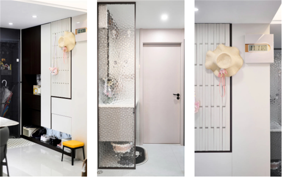 玄關(guān)設(shè)計整體柜,底部為儲物鞋柜,中間開放格搭配墻面掛鉤,簡約而實(shí)用,完美詮釋了現(xiàn)代風(fēng)格的簡潔與高效。這一設(shè)計不僅提升了空間利用率,更讓日常出入變得更加便捷。