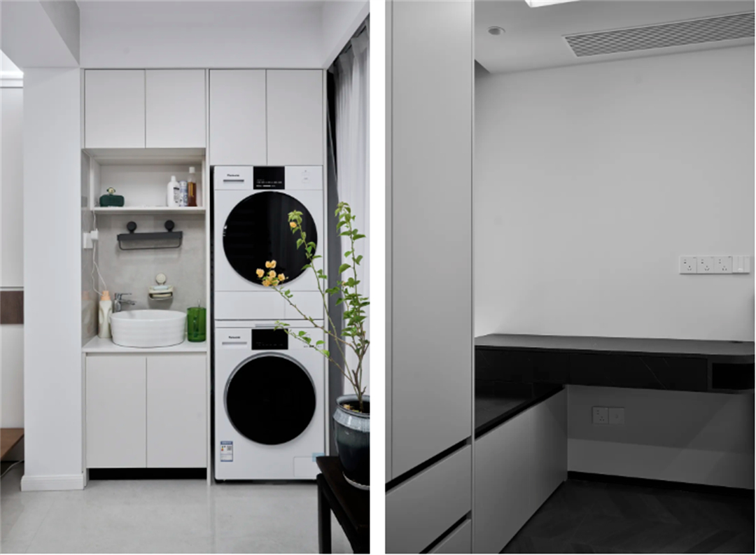 洗衣機側邊柜專門定制15cm薄柜,清潔劑、洗衣液全藏進去;