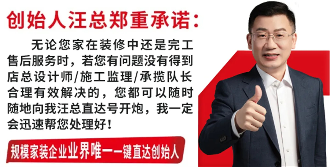 云蘭整裝王創(chuàng)始人汪興國(guó)先生專(zhuān)做上海家裝行業(yè)23年,始終堅(jiān)持"嚴(yán)管理、真靠譜"的經(jīng)營(yíng)理念。為了讓客戶(hù)更放心,他創(chuàng)立了"汪總直達(dá)號(hào)"監(jiān)督機(jī)制:裝修過(guò)程中遇到任何問(wèn)題,客戶(hù)都能一鍵直達(dá)老板,快速解決難題,為品質(zhì)交付提供堅(jiān)實(shí)保障。