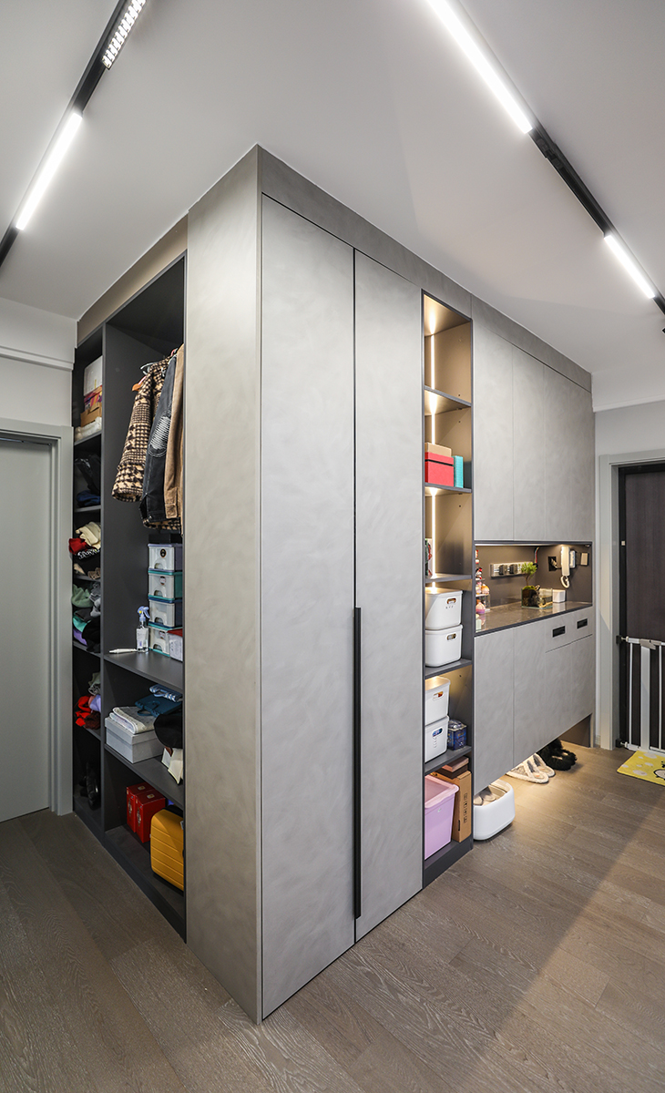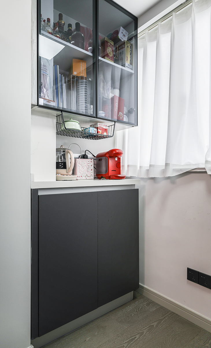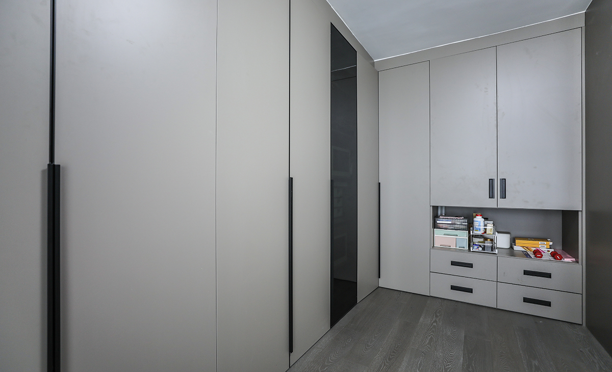 入門的玄關(guān)是精致簡約的抽屜,上方留白,整體高度低,方便擺放各種雜物,滿足戶主需求。