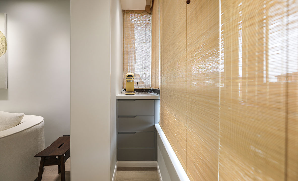 臥室以溫馨為主,通過透光的紗窗簾,陽光緩緩落入,內衛的設計依然是主打干凈簡約,卻也不失深色的平衡。