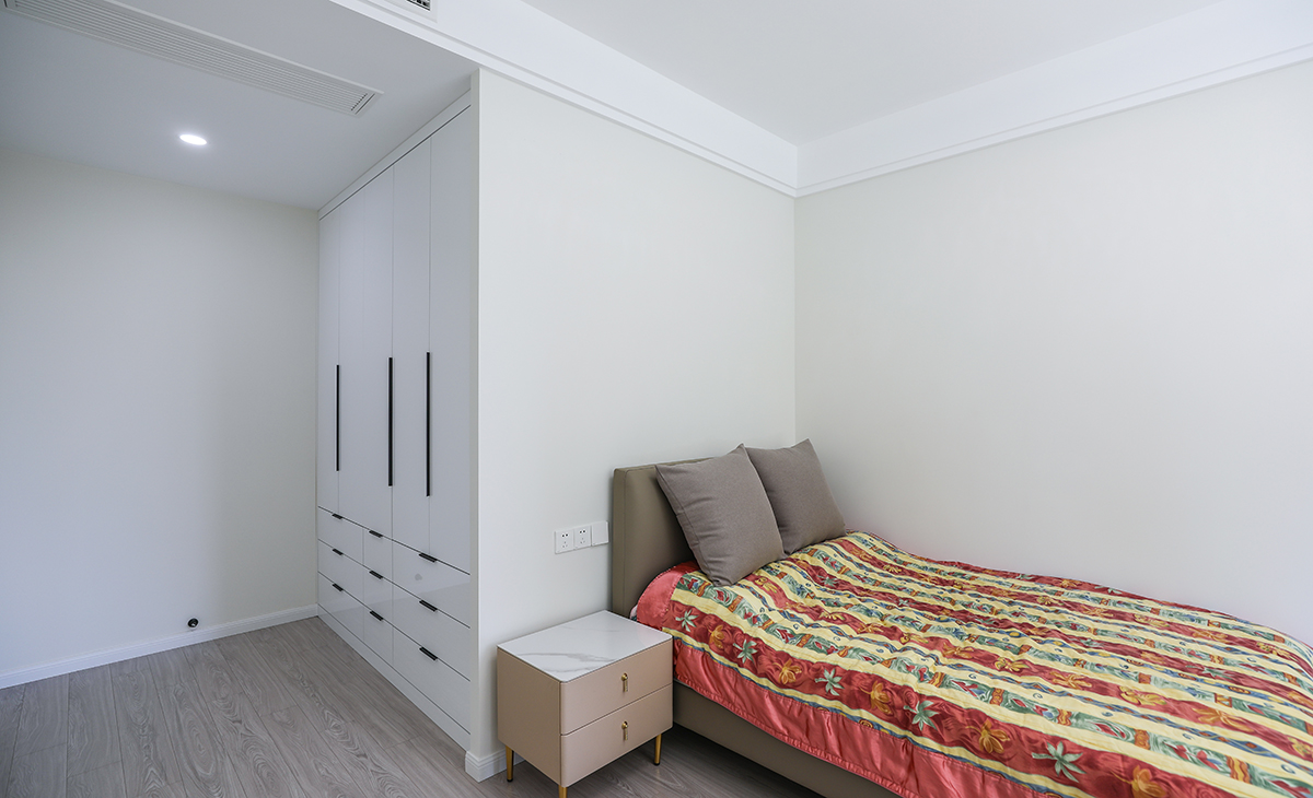 小次臥的空間雖然比較小,但一點(diǎn)不覺得局促,做了整面墻的收納,讓整體感覺更加的細(xì)膩流暢。