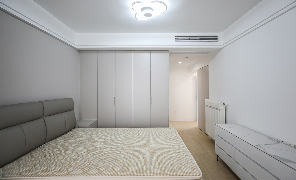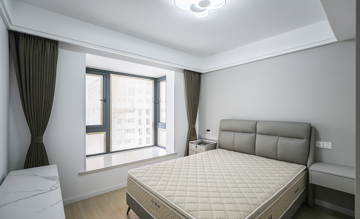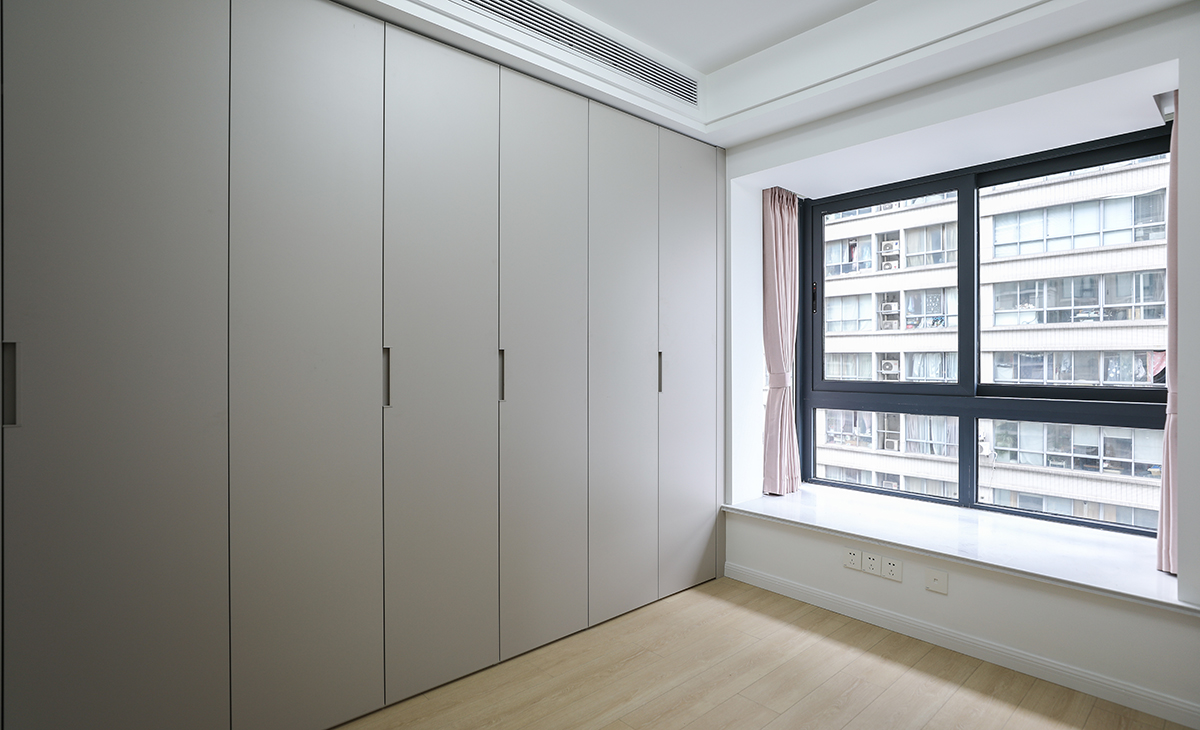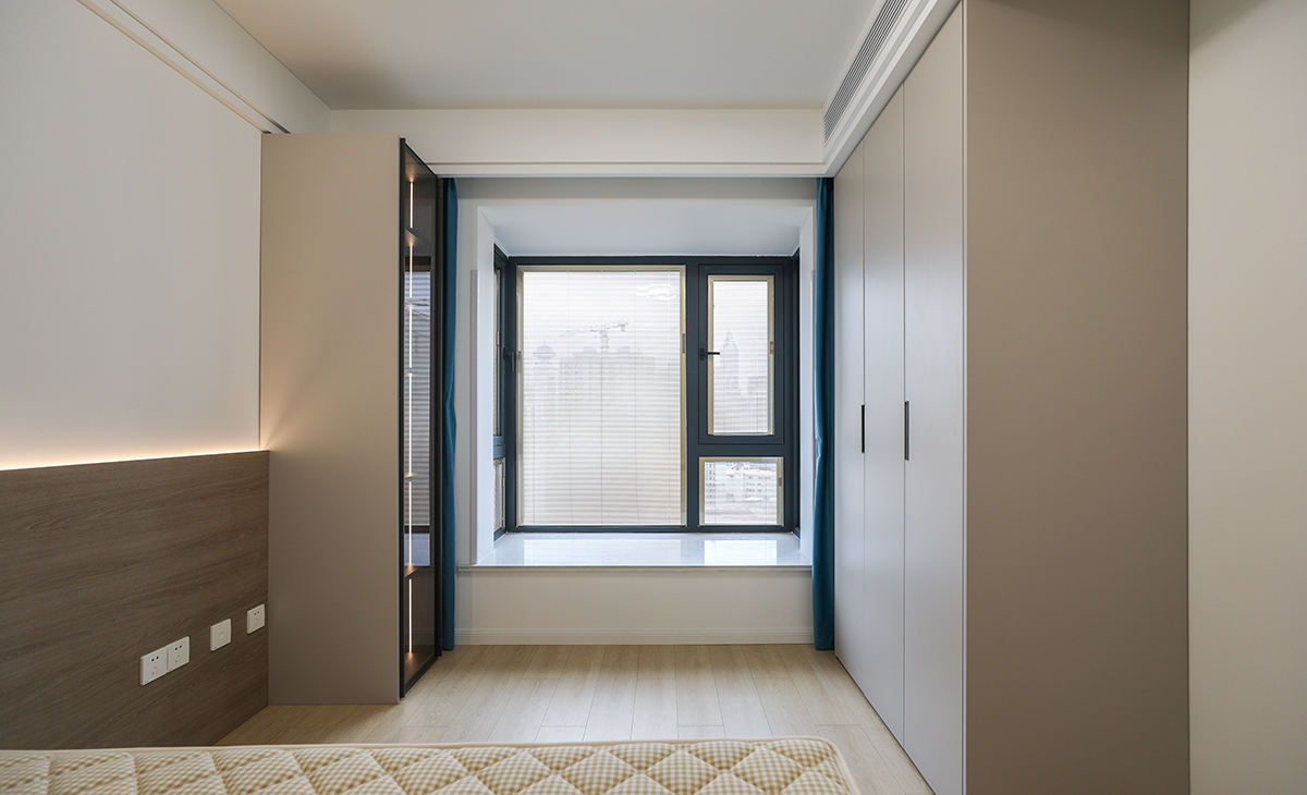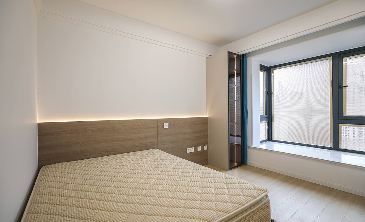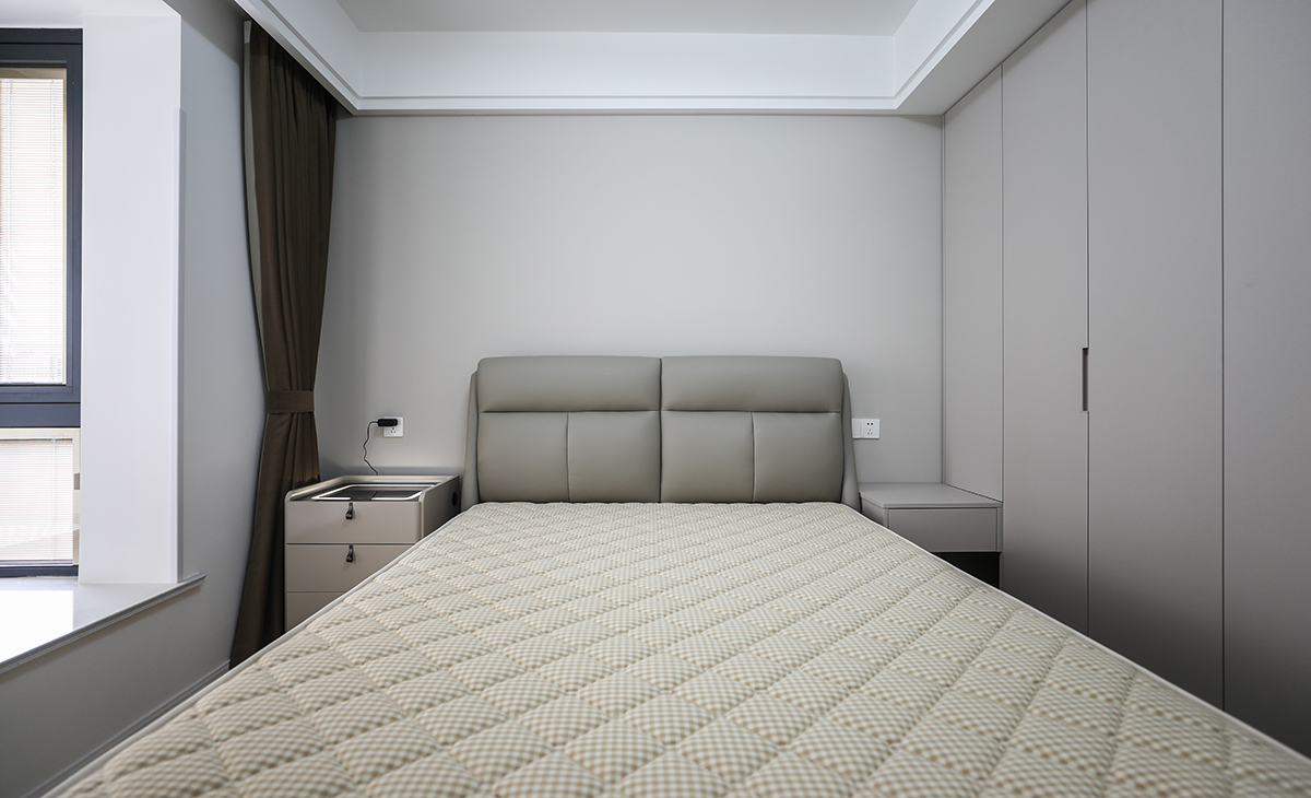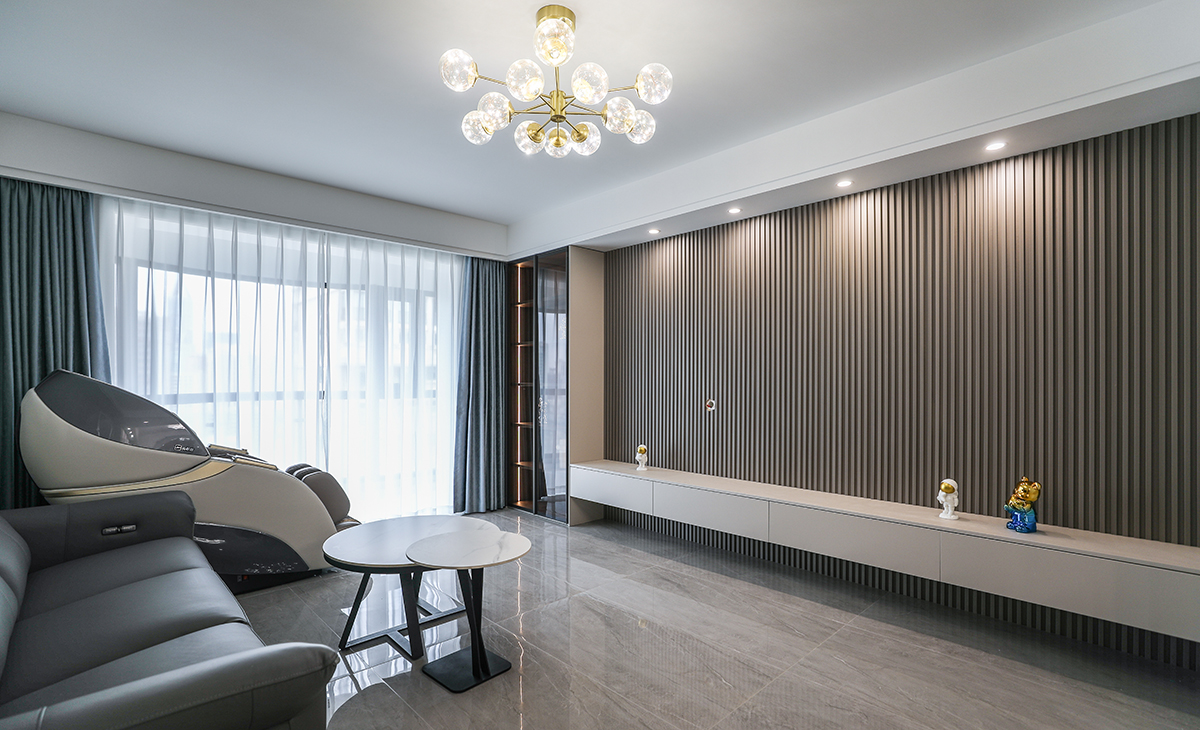 居住人口為三口之家,業主處于對新生活的向往,緊隨時代潮流,男主人的職業是律師喜歡簡潔、大氣、高級的感覺,客廳電視背景是做當下比較流行的木柵格造型,線條感極強,有拉伸空間的感覺