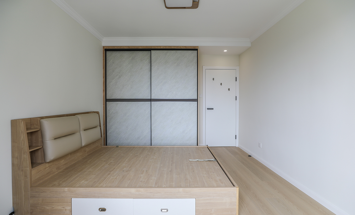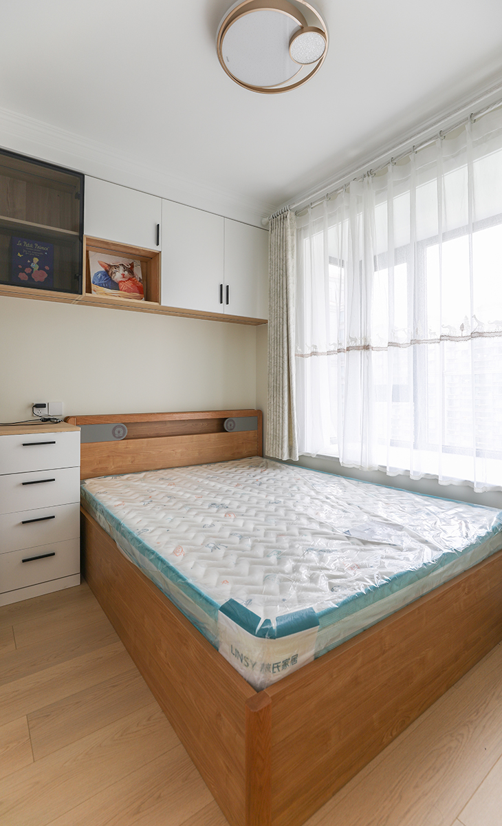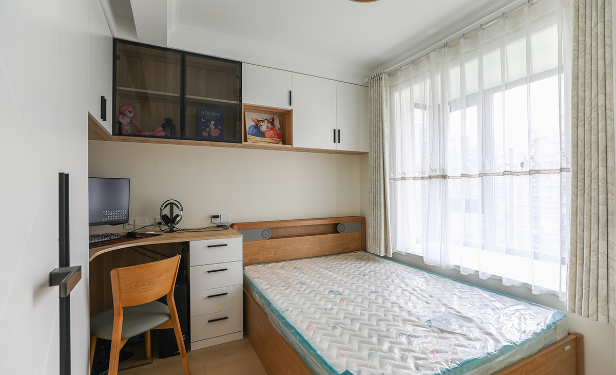次臥是以后寶寶的房間,衣柜和書柜連成一體,充分利用空間。