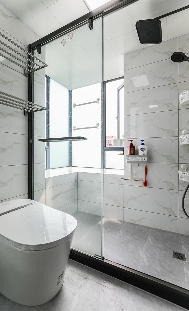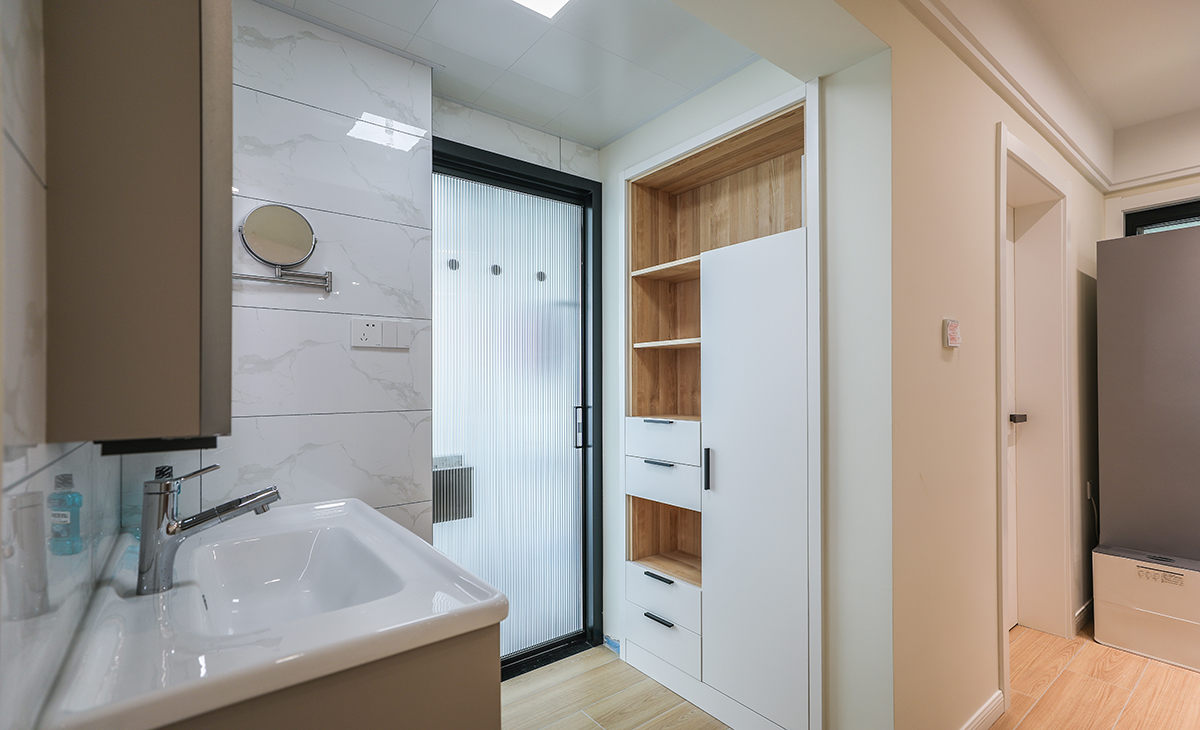 衛生間采用干濕分離,原有門洞改了在餐廳,增加了收納空間。
