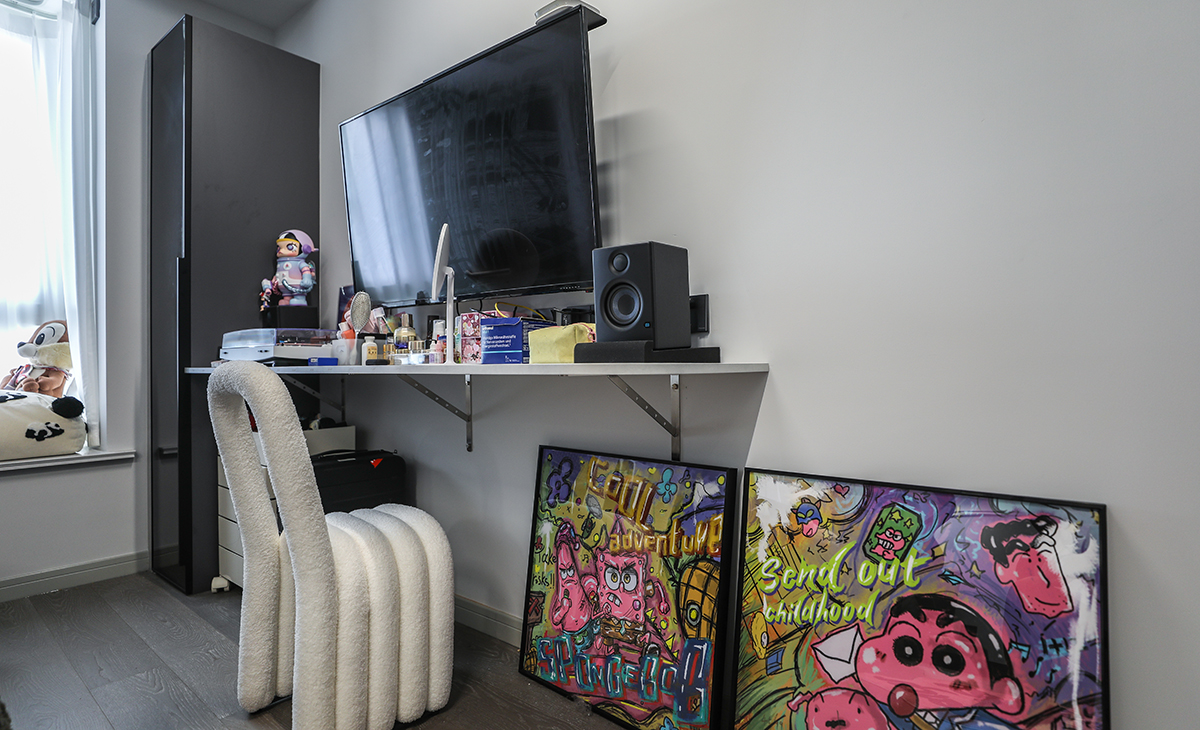 入門的玄關是精致簡約的抽屜,上方留白,整體高度低,方便擺放各種雜物,滿足戶主需求。