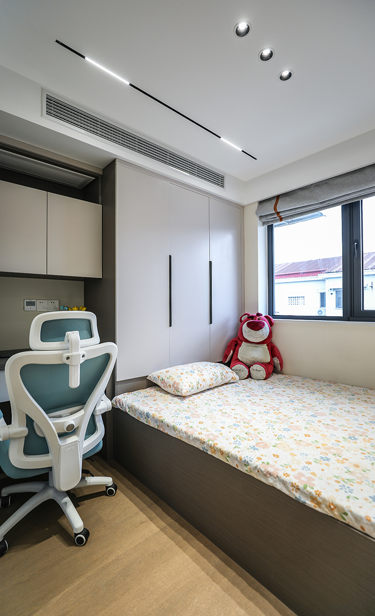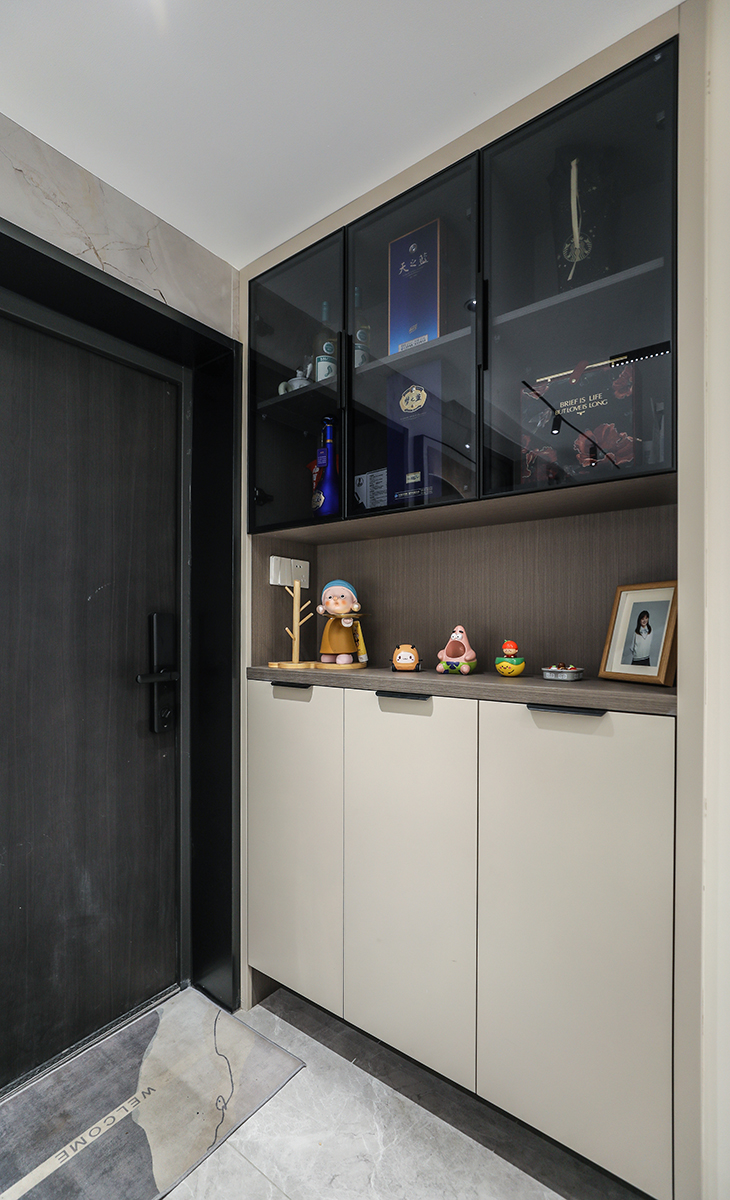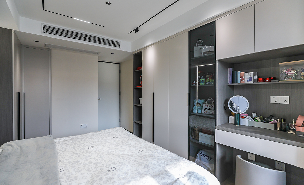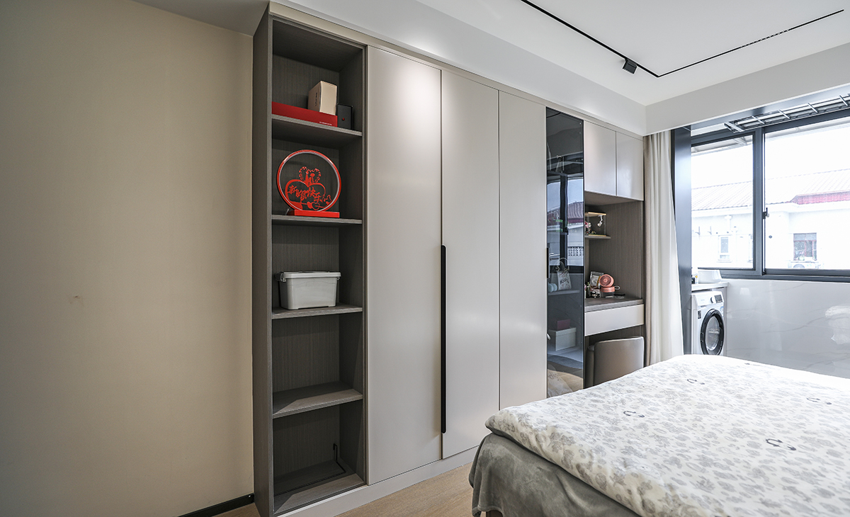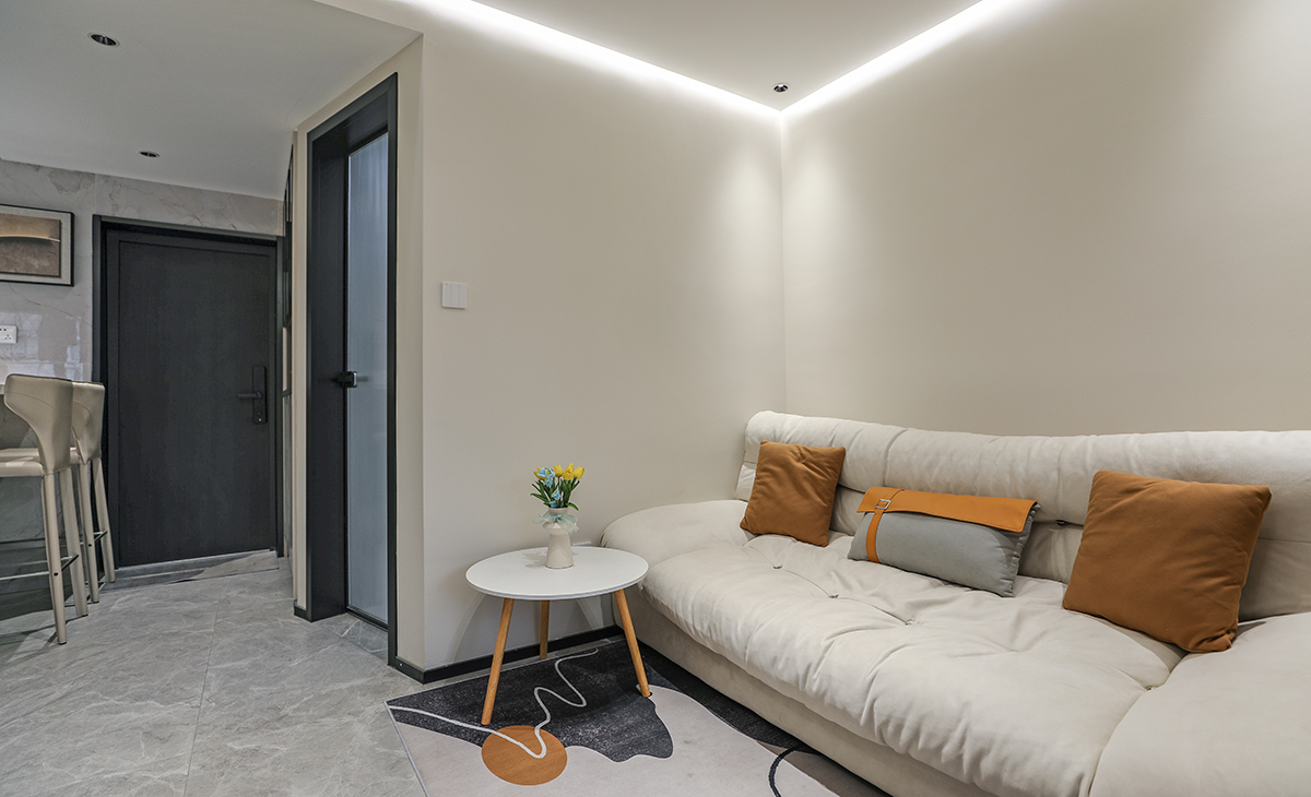 空間整體以米灰色調(diào)為主,現(xiàn)代感軟裝與整體空間色調(diào)融為一體,三聯(lián)動移門更為客廳增加了光亮。