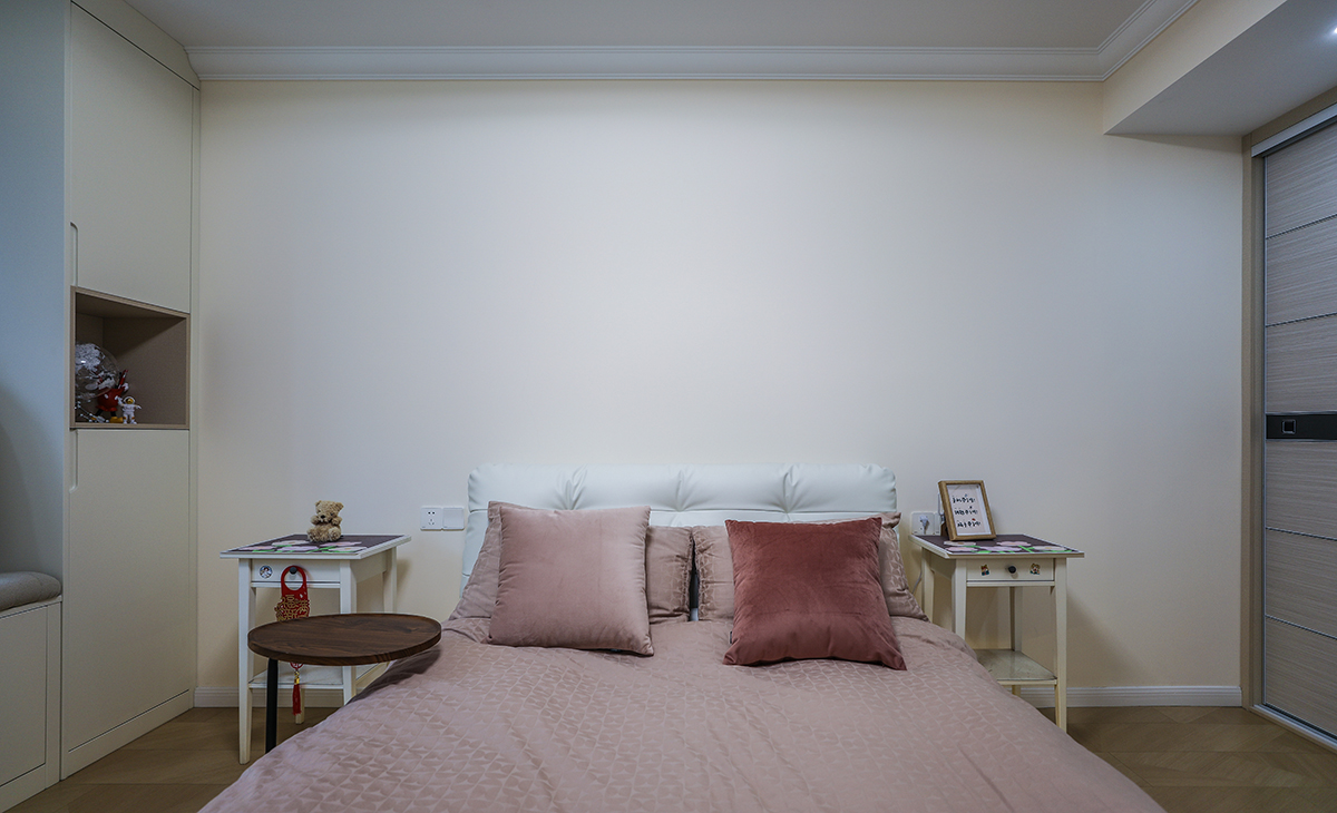 臥室整體風格就是簡單色調溫馨,體現了女主的簡單直爽的性格。
