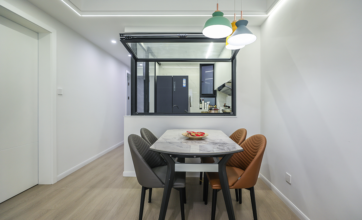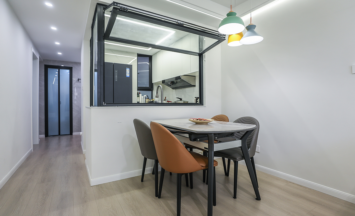 楊浦合并房裝修:簡約風格重塑空間格局,打造通透廚房!