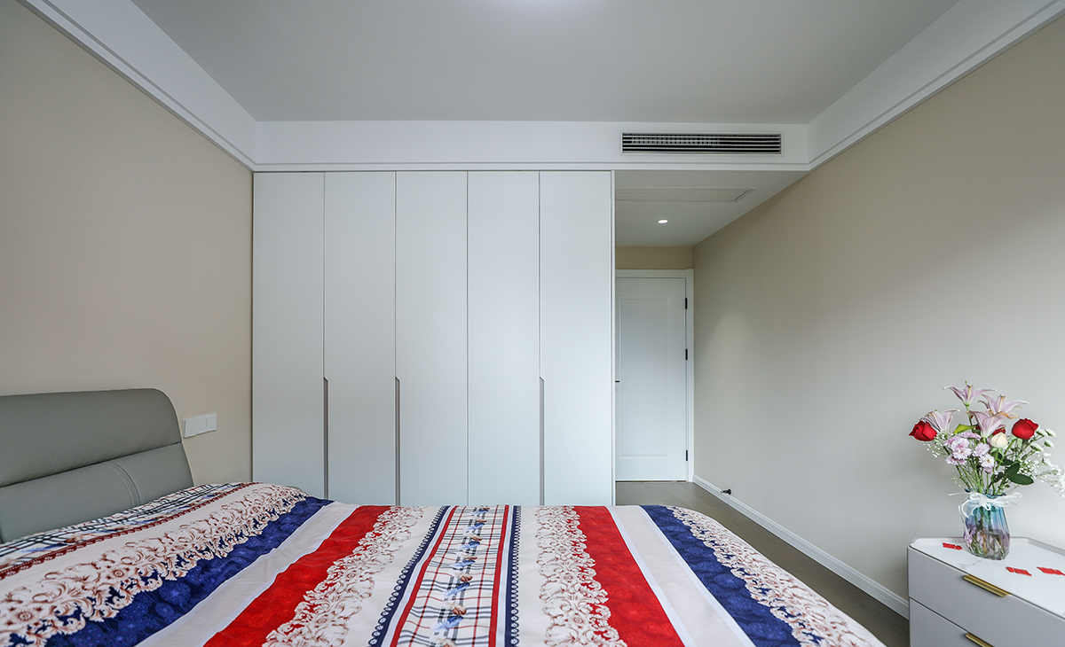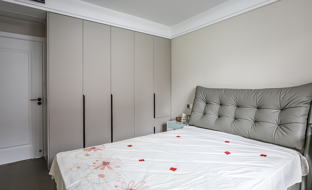 主臥地面采用的是實(shí)木復(fù)合地板淺灰色,與床及床頭柜搭配為一體,更衣柜采用一門(mén)到頂做法,預(yù)留暗裝拉手造型以簡(jiǎn)潔平板為主,方便打理,頂面為雙眼皮吊頂,內(nèi)嵌中央空調(diào),在每個(gè)角度我們臥室都是一個(gè)整潔、簡(jiǎn)約、也不失優(yōu)雅的一個(gè)空間。