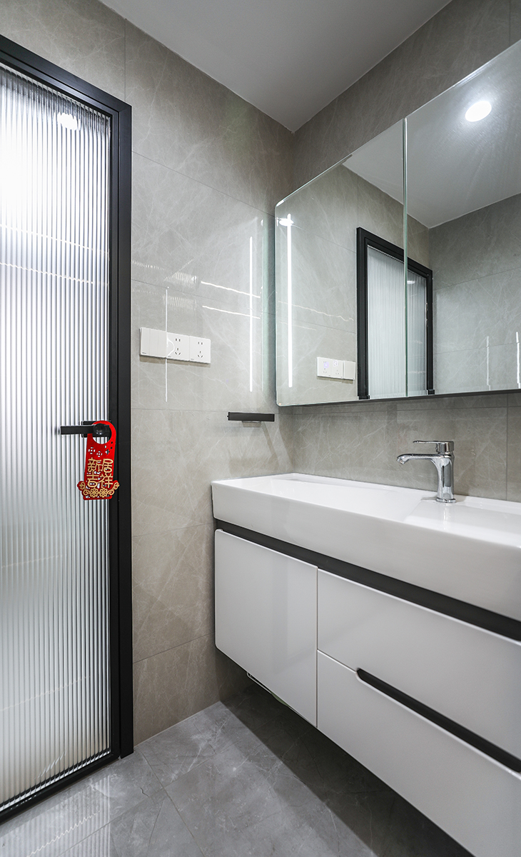 主衛(wèi)空間也很大,能滿足主人的所有需求,馬桶、淋浴房、浴室柜一應(yīng)俱全,黑色邊框淋浴房,讓整個(gè)空間協(xié)調(diào)統(tǒng)一,大氣時(shí)尚,主人很滿意,不斷地夸贊設(shè)計(jì)師對(duì)色彩的精準(zhǔn)把握。