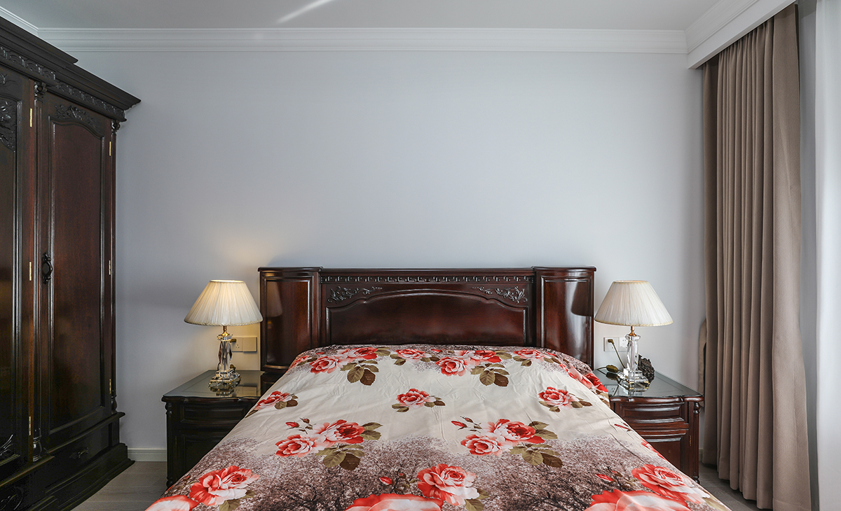 主臥保留1.8m老家具重新翻新打蠟,造型以簡潔平板為主,方便打理,體現(xiàn)了現(xiàn)代的大氣,兼容。