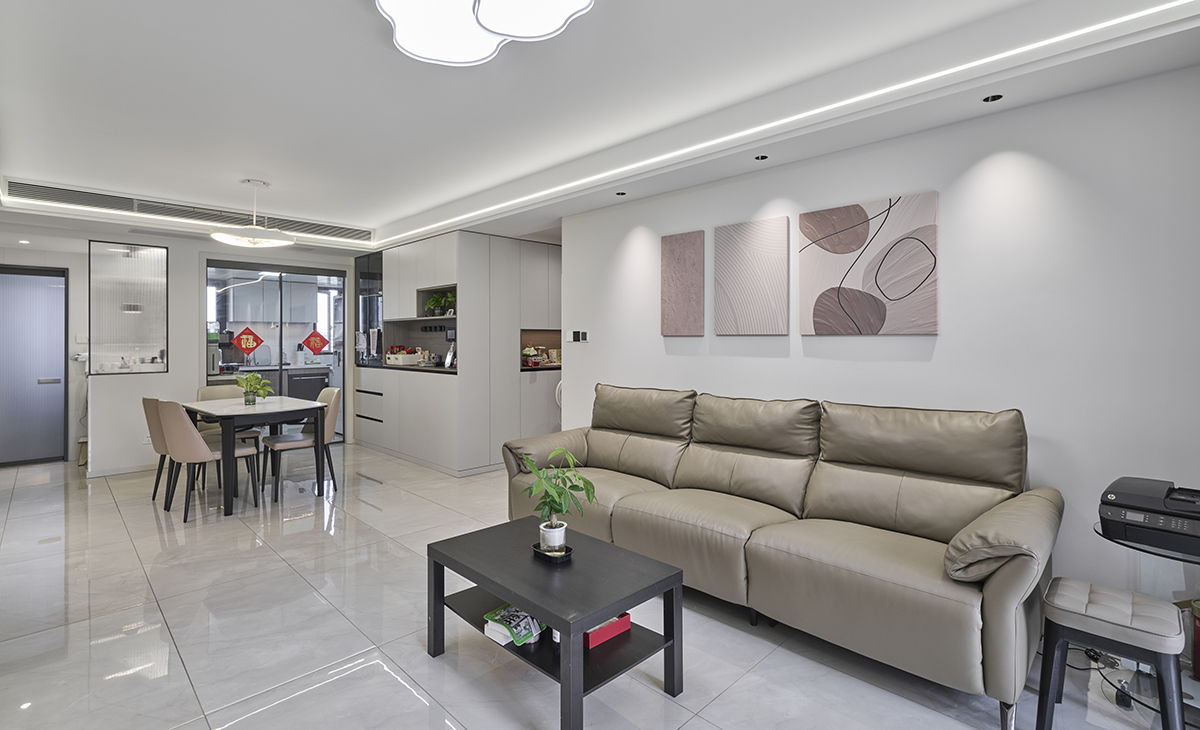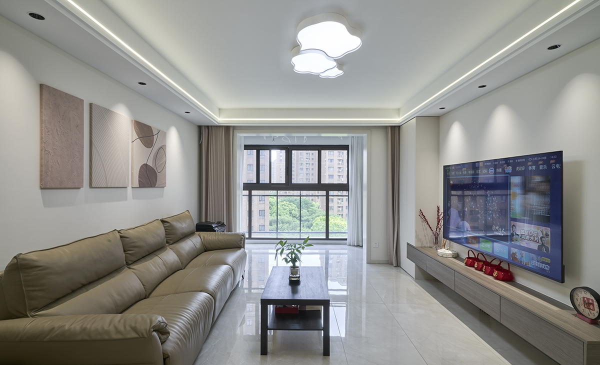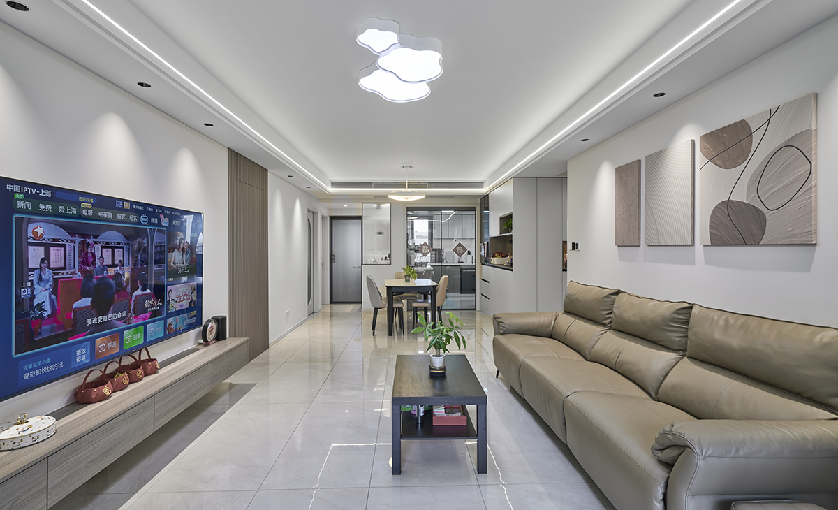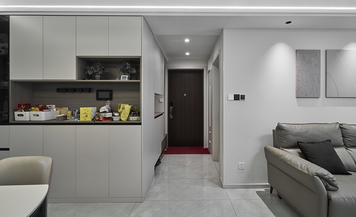 中環國際公寓:大面積留白,電視墻做隱形門,給空間無限可能
