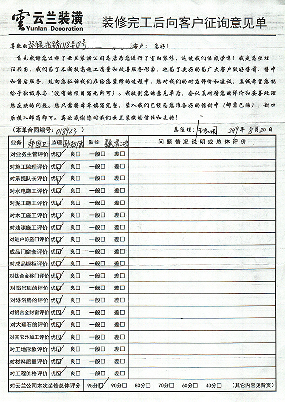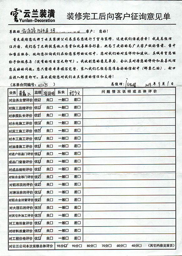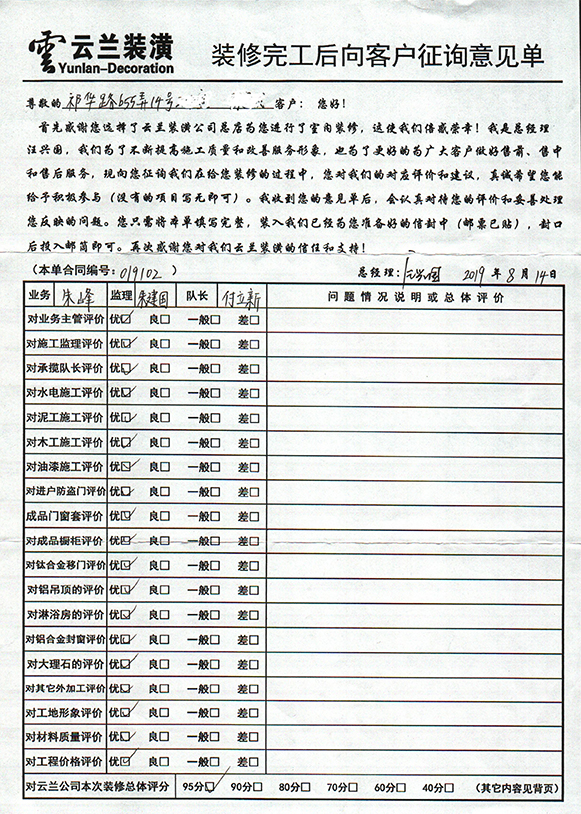 1. 客戶完工評價(呼瑪路通河三村212號)