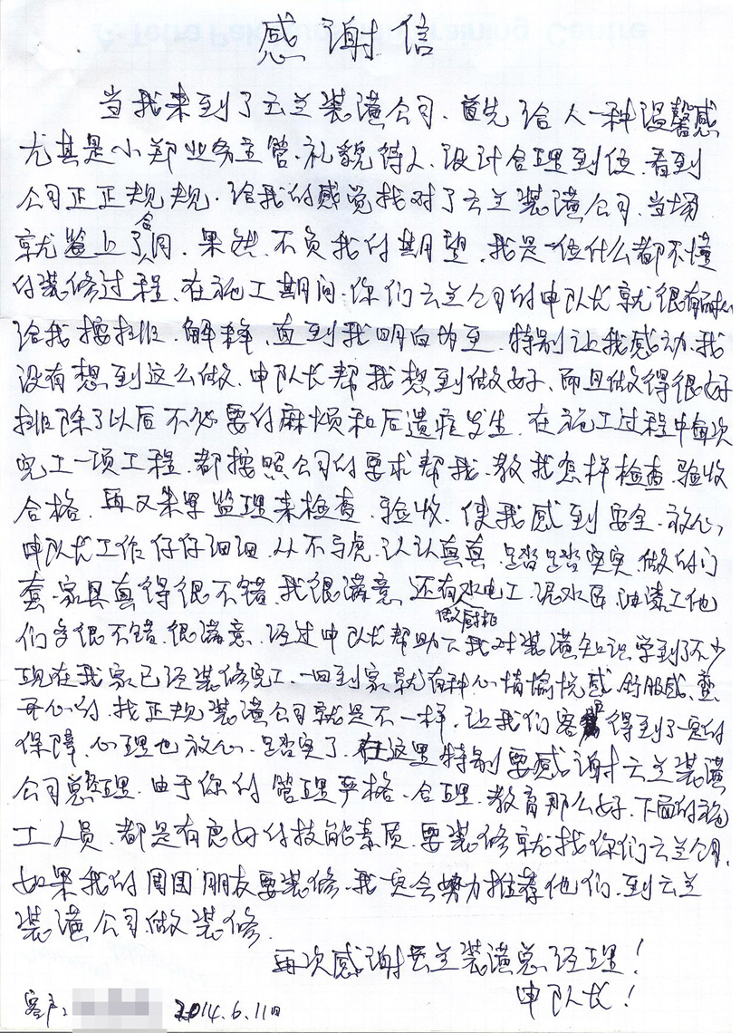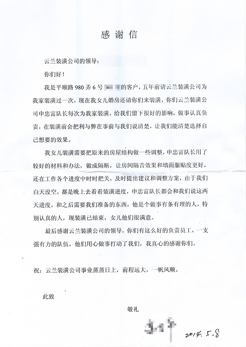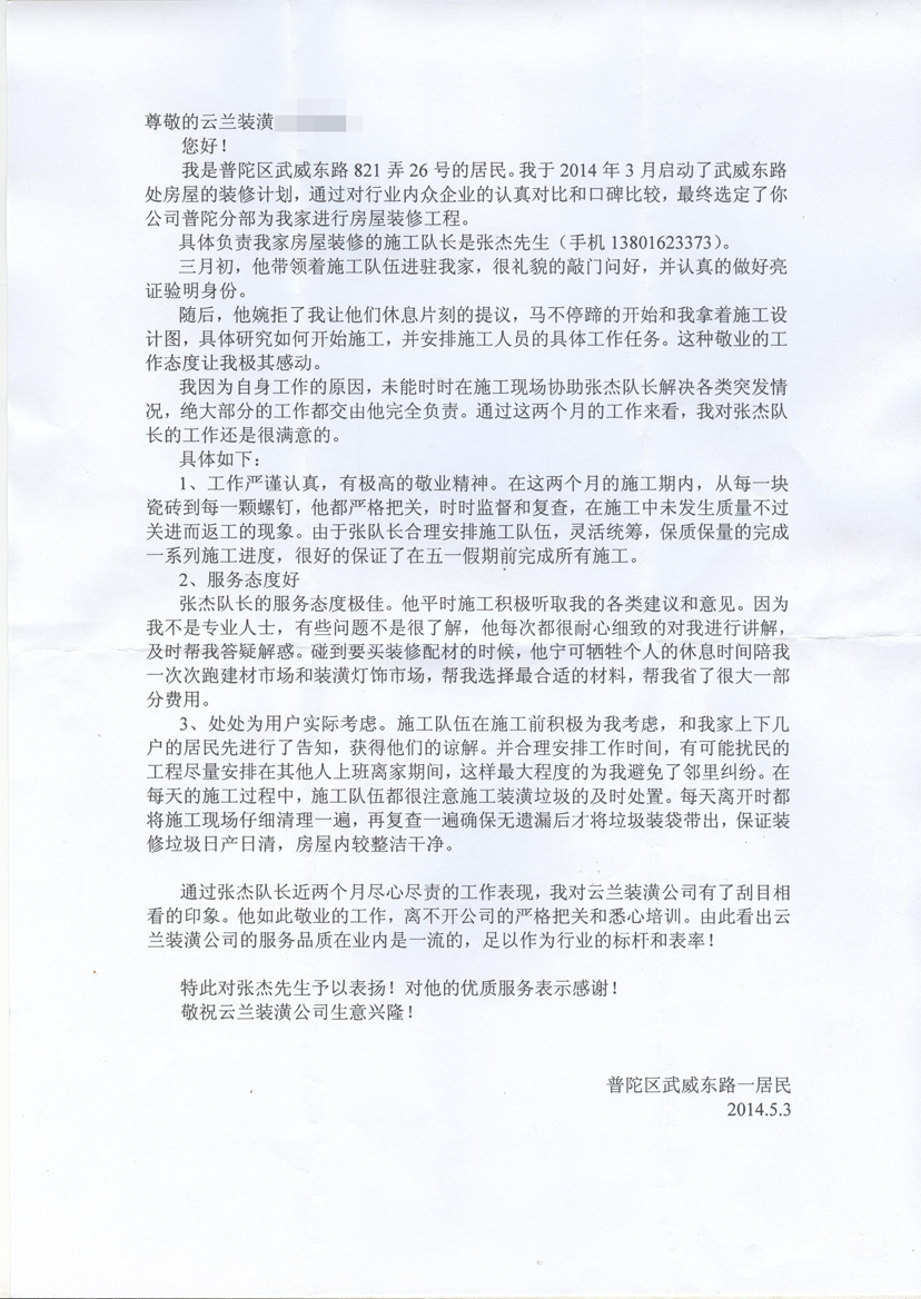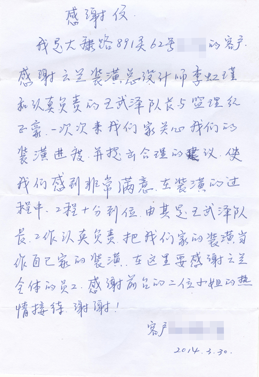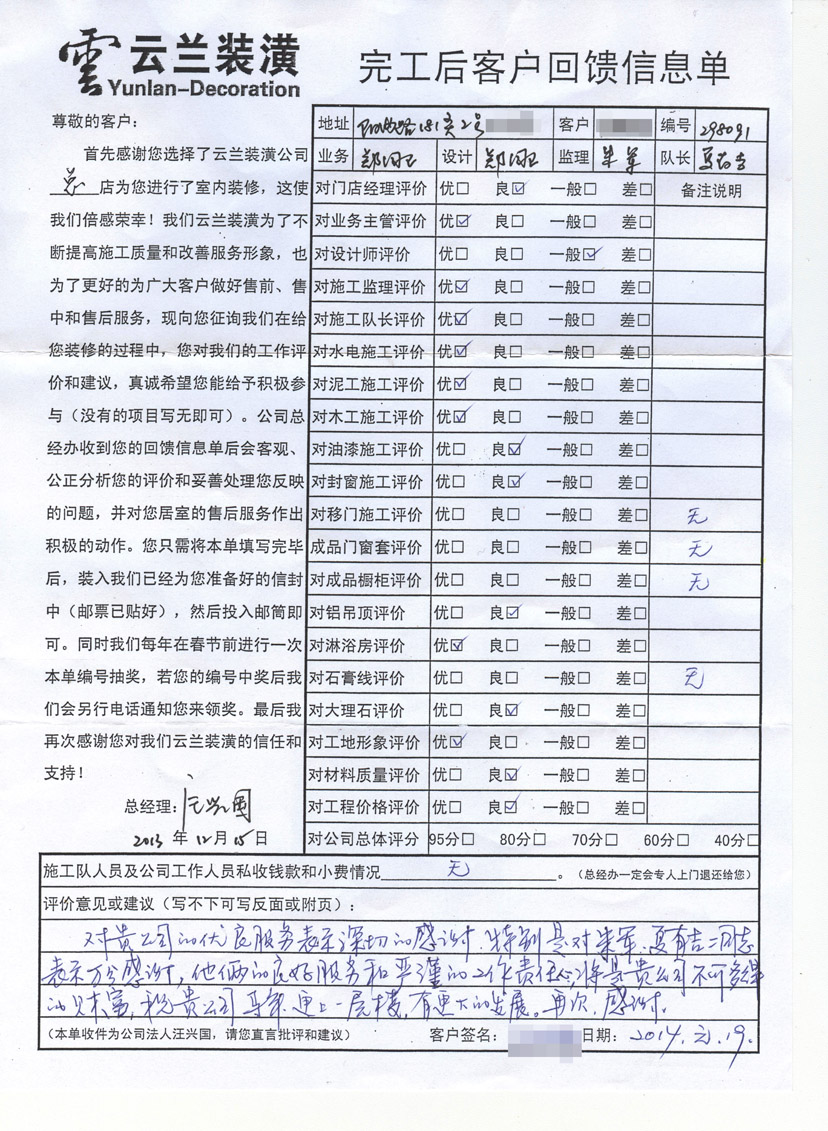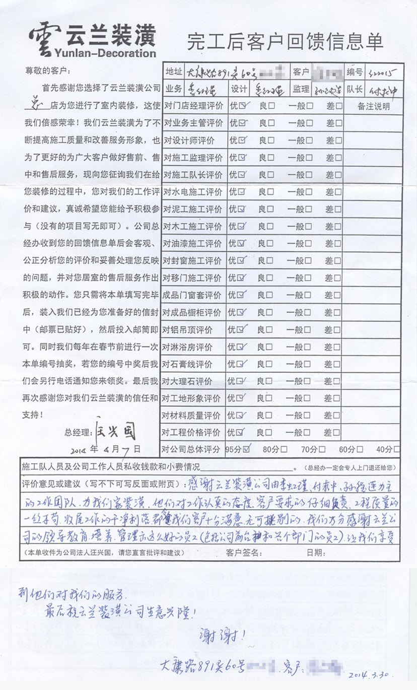 5. 客戶完工評價(平型關路粵秀名邸3號)