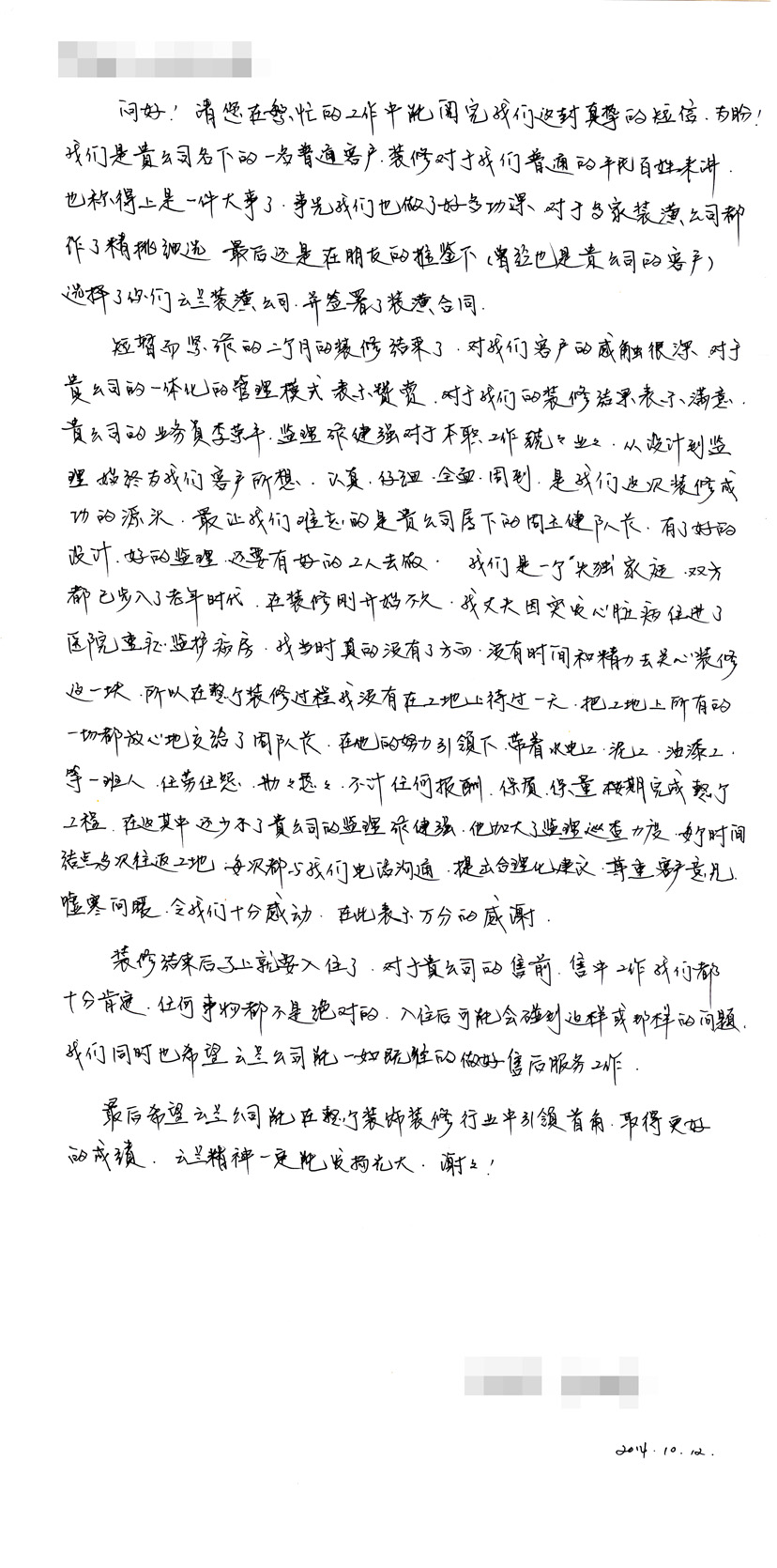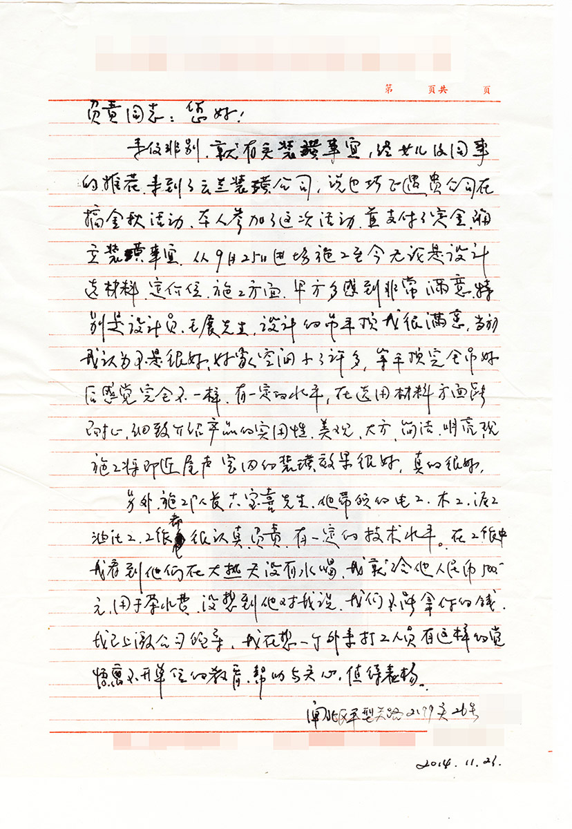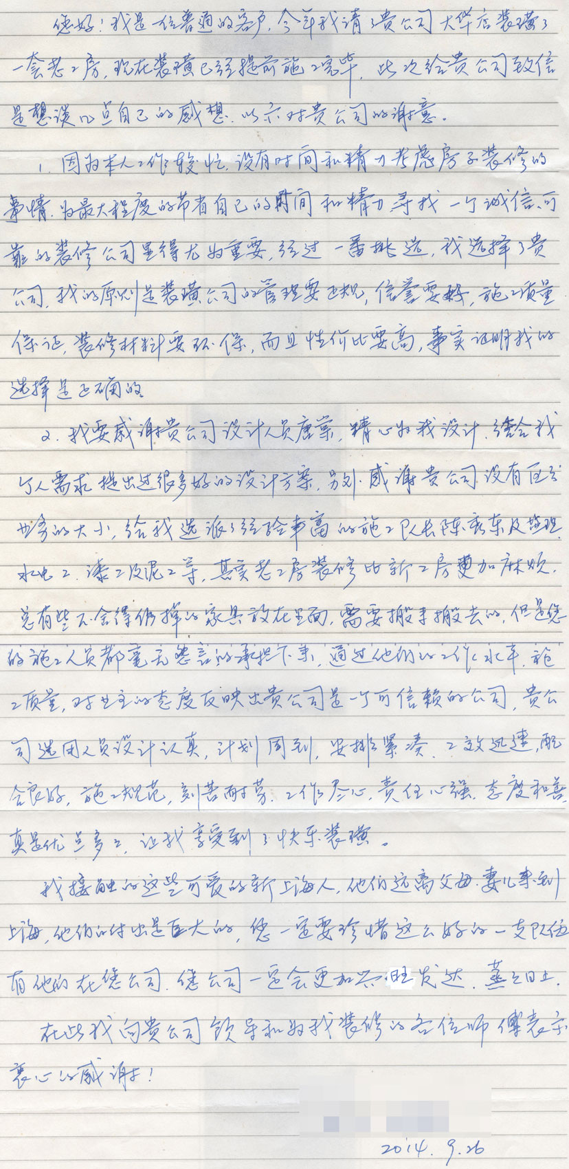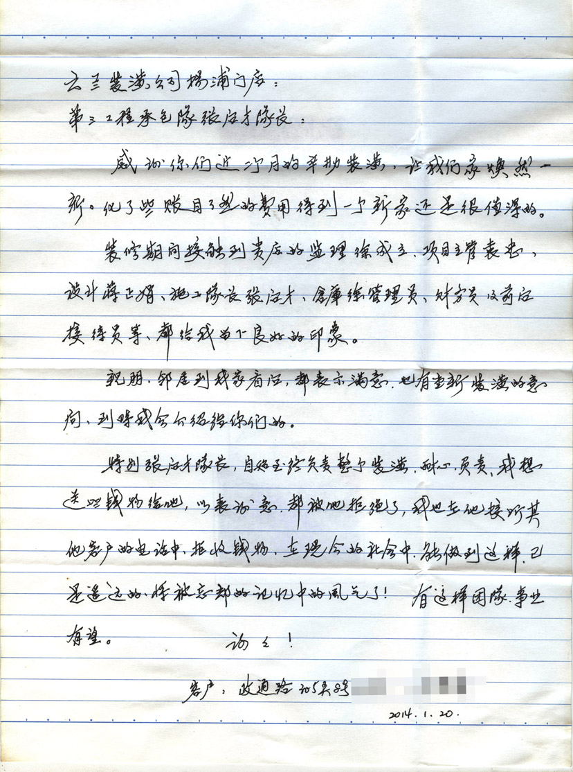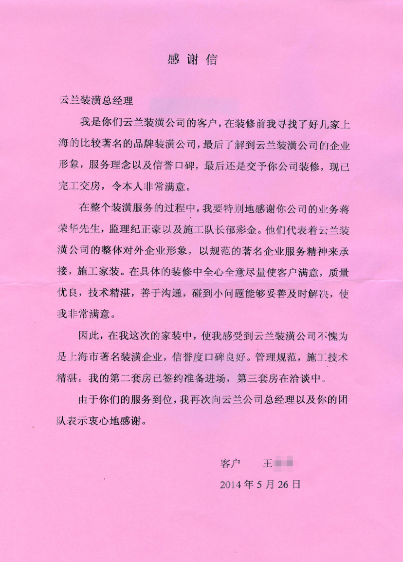 5. 客戶完工評價(平型關路粵秀名邸3號)